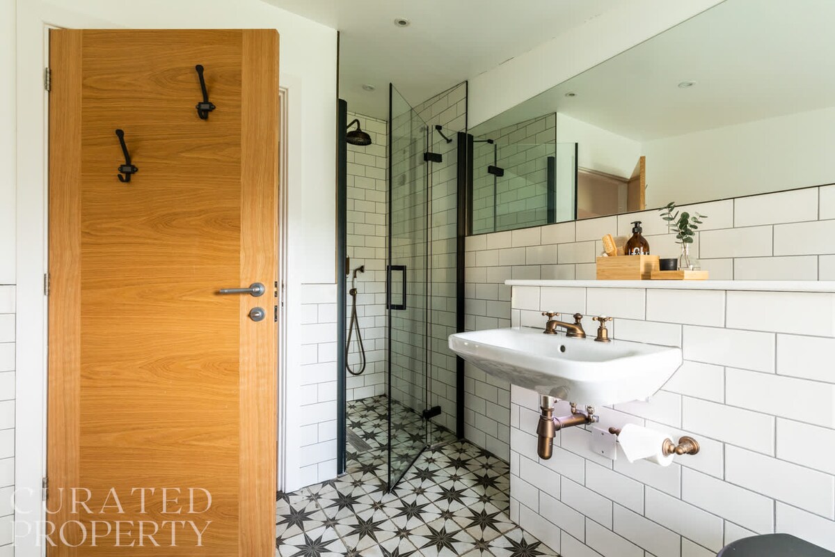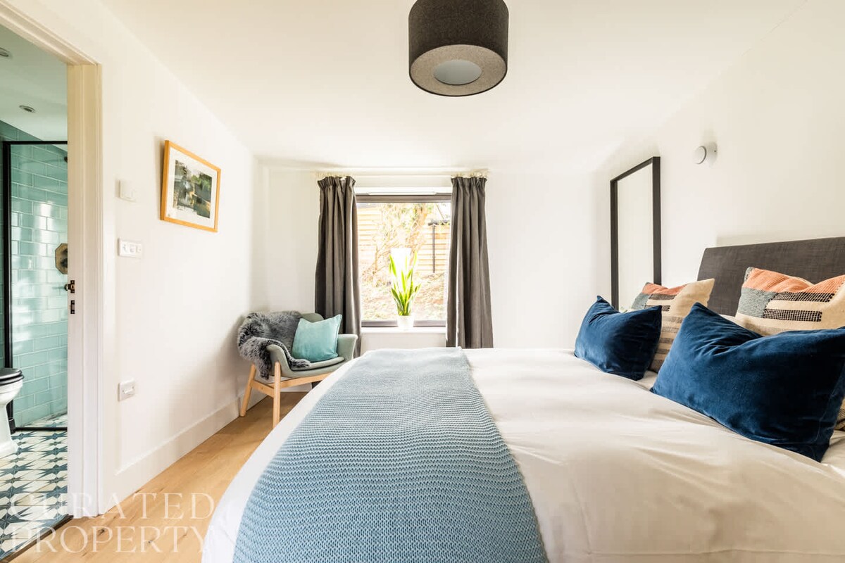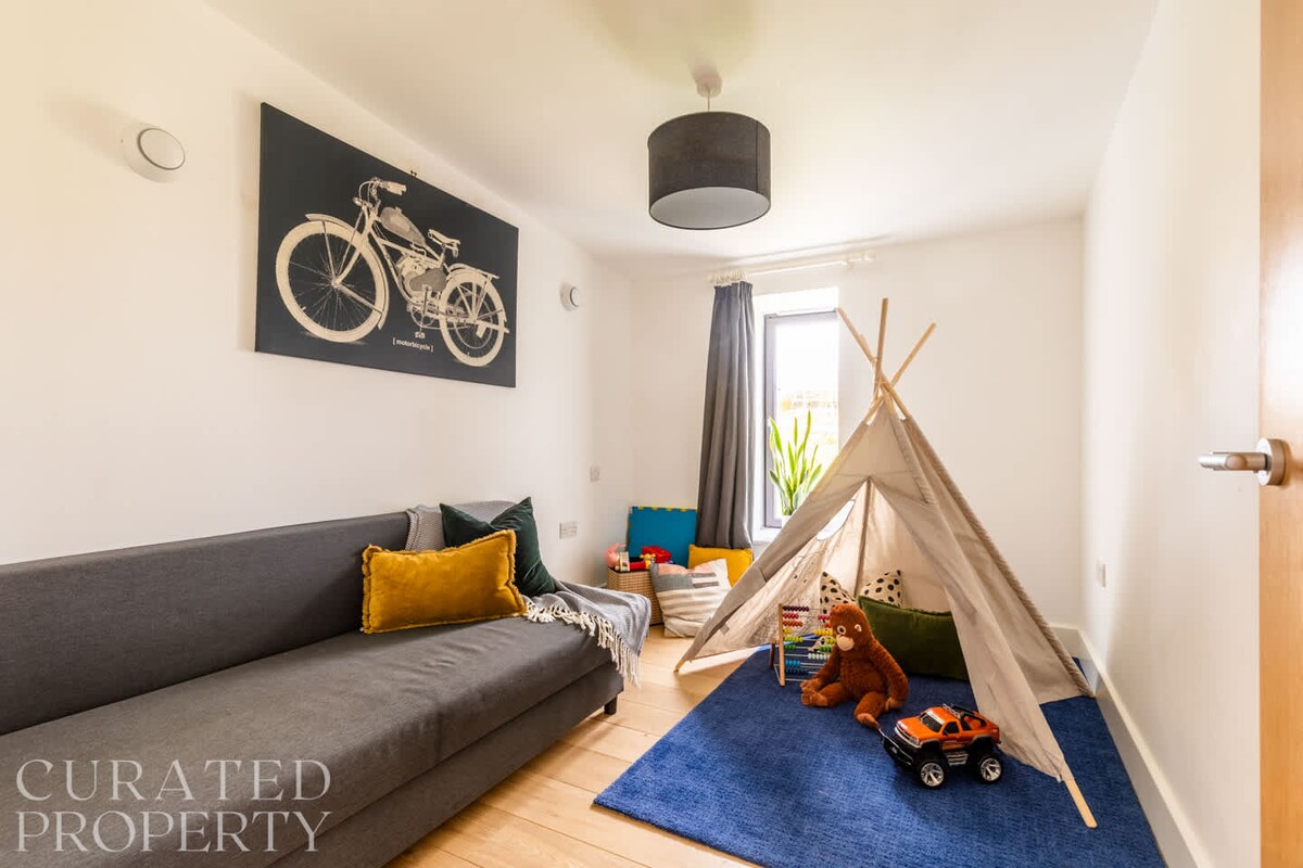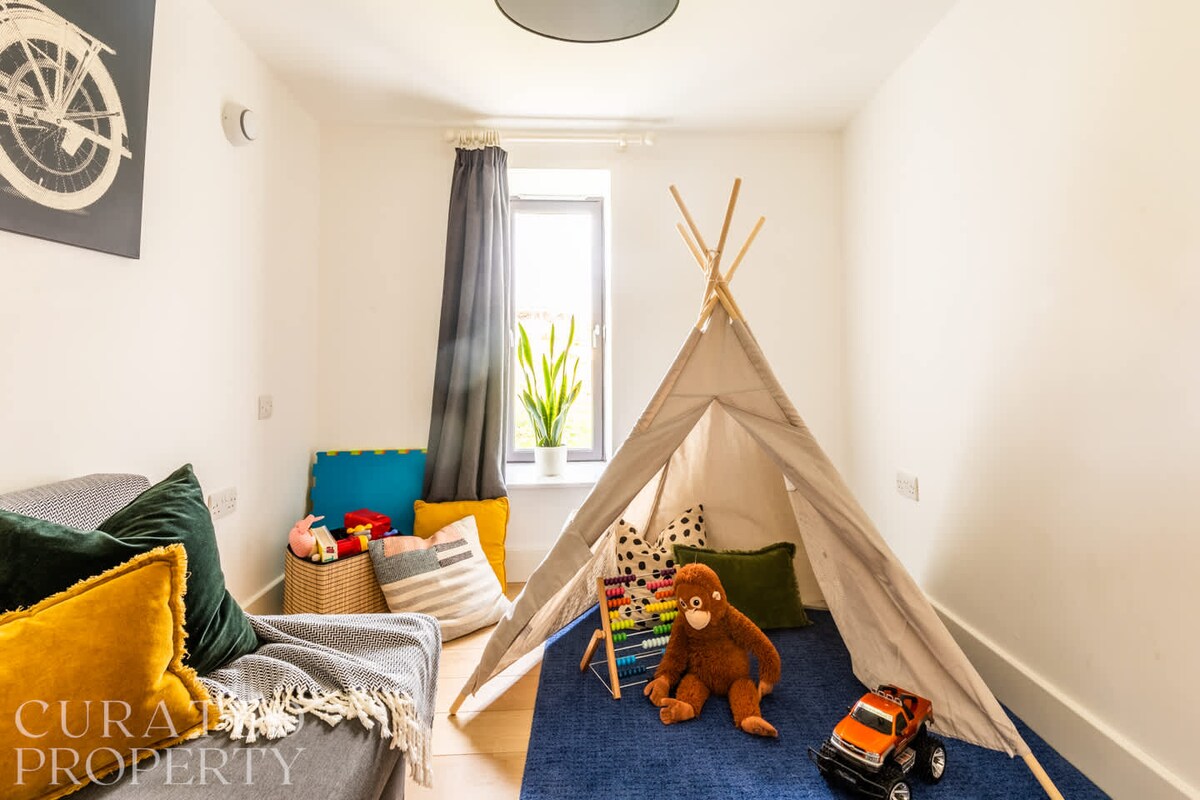 The playroom is now set up as a twin bedroom with two single beds, making it suitable as a sixth bedroom. There is an additional utility room and boot room located off the entrance hall and the property comes with amble private parking and secure garden area, with a patio area to the side of the building.