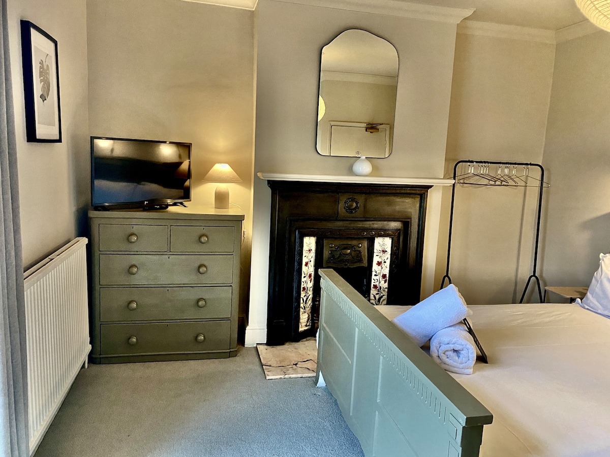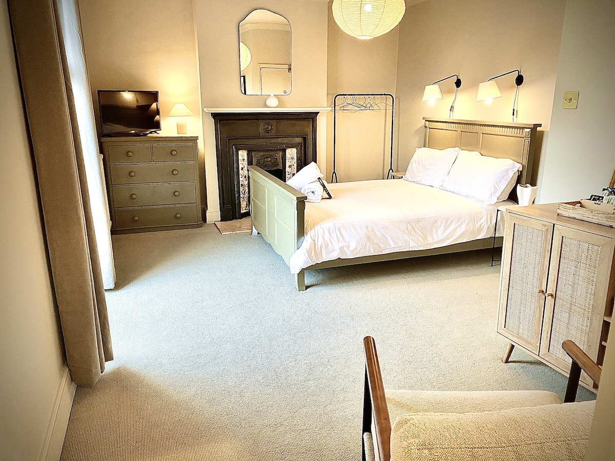 A spacious room with fireplace, king-size bed with en-suite bathroom..Guest access