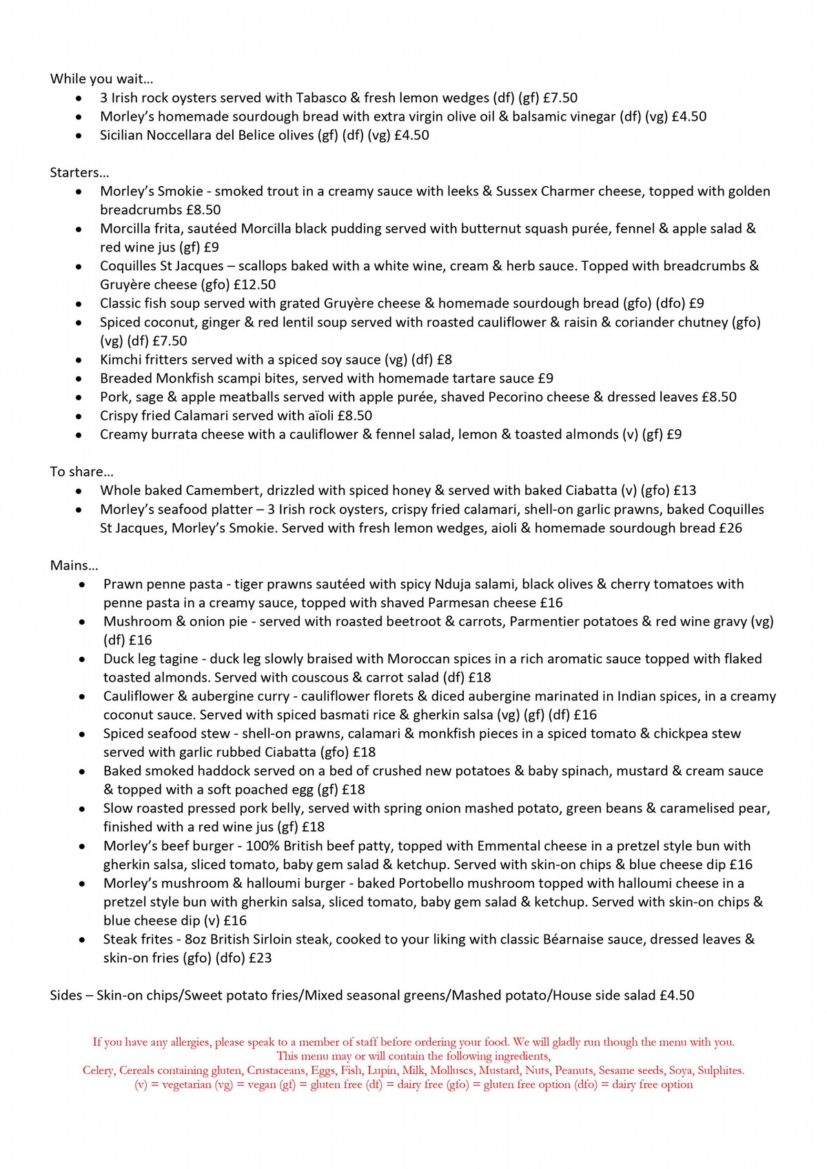 It is agreed that the guest will conduct him/ herself in a respectable manner and will not cause any nuisance or annoyance within the hotel premise. The Management has the right to request any guest to vacate his/her room or other areas of the hotel forthwith, Without previous notice and without assigning any reason whatsoever, and the guest shall be bound to vacate when requested to do so. In case of the default, the Management has the right to remove the Guest luggage and belongings from the room occupied by him/her. The guest will be held responsible for any loss or damage to the hotel property caused by themselves, their guests or any person for whom they are responsible. No smoking is permitted inside the buildings. You are free to smoke outside in the public area, but please refrain from smoking anywhere inside. Please be mindful that we have other guests staying within the building and that we ask you be quiet during the following hours 11pm - 8am. Look after the rooms and all that are held within including all the soft furnishings and furniture. If you damage anything, please let us know so we can resolve this. The rooms are inspected regularly, however, if you happen to notice a maintenance issue or something not working such as a light or table lamp, please let us know by reporting to 01273 915 065. If you are bringing your children, please do not leave young children unattended in the rooms. Make sure you take all your belongs with you when you leave. A small admin charge and postage charge is applied for any items left and needing to be forwarded on to your home address. PET POLICY Well behaved small/meduim sized dogs are welcome to stay at Morleys and to also access parts of the restaurant (normally the front bar and outside in the garden). Please follow our pet polcy in place : Pets are not allowed on any of the soft furnishings or on the bed/s within your room/s. If dogs get wet on a walk they will be thoroughly dried on arrival back to your room. Dogs are not be left alone in the room at a time. Guests must ensure that their dogs will not cause damage to the room. All guests are responsible for their pets in accordance with the Animal Welfare Act. All pets kept at Morleys must be vaccinated and regularly treated for fleas and worms (if appropriate). Guests are responsible for keeping all areas of the room clean and free from parasites, such as fleas. Guests must ensure their pets do not cause a nuisance to other guest/s staying. This includes excessive noise. Dogs must be kept under control and on a lead in any public places, communal areas and walkways. Pets must not be allowed to foul inside the property. Any pet faeces must be removed immediately from the garden or outside areas and disposed of safely and hygienically. Any animal listed in the schedule of the Dangerous Wild Animals Act 1976 may not be kept at the property. Any dog listed under the Dangerous Dogs Act 1991 may not be kept at the property with the exception of dogs registered on the Index of Exempted Dogs.