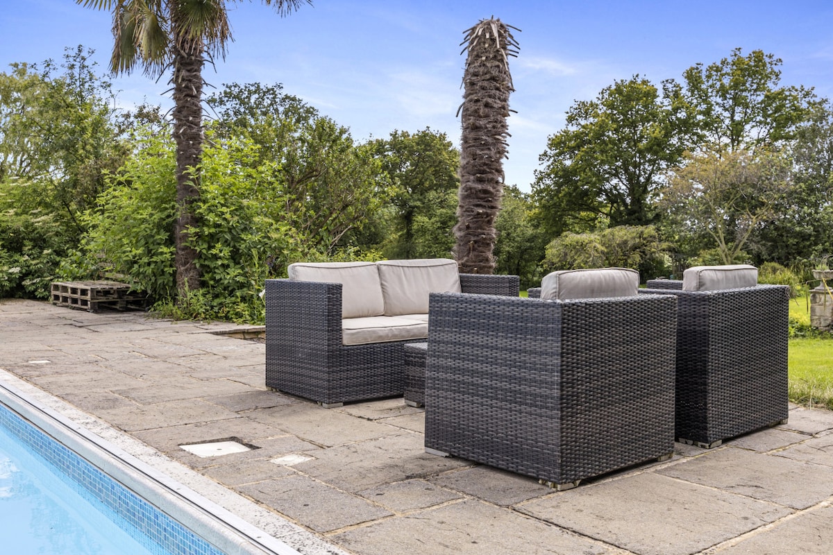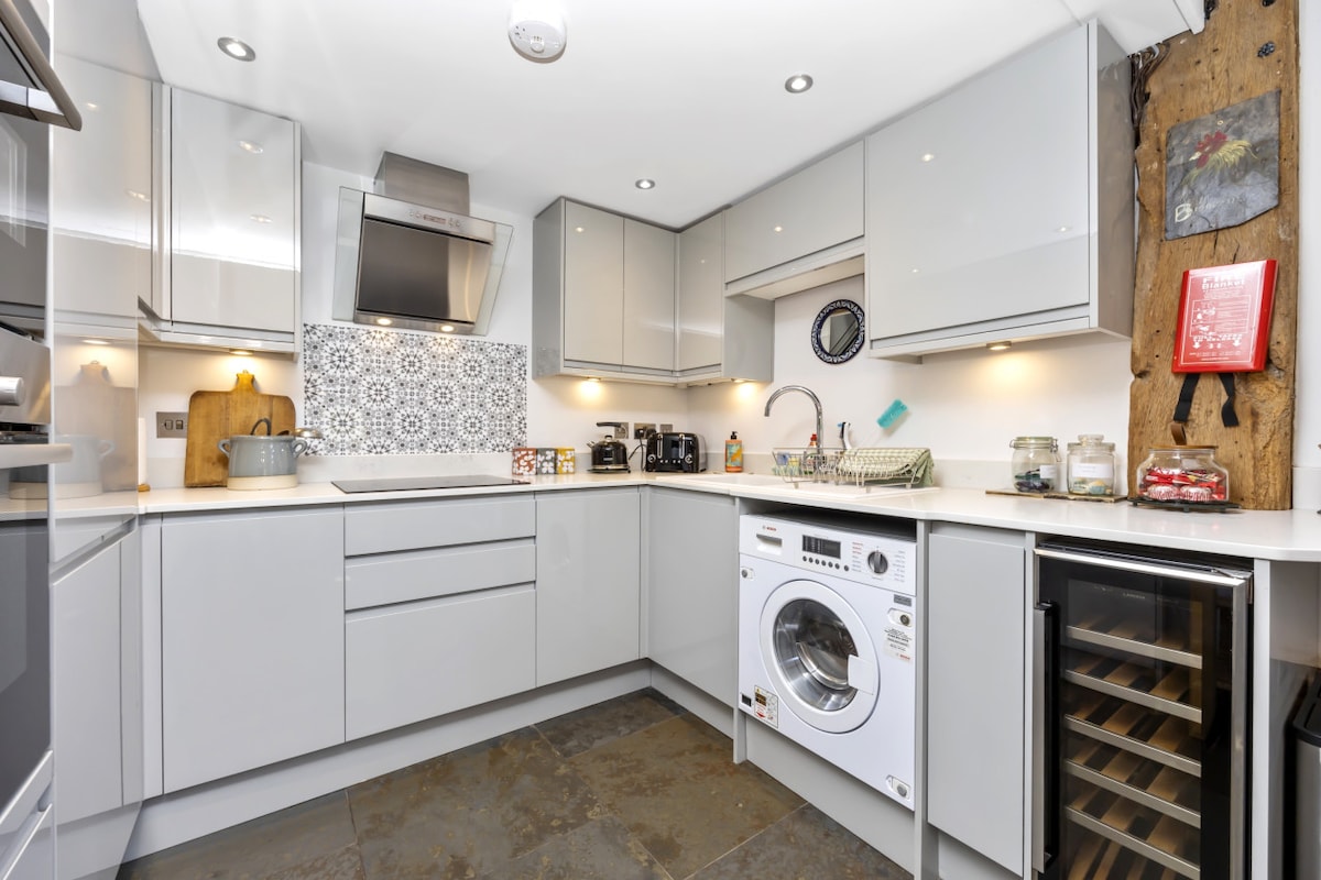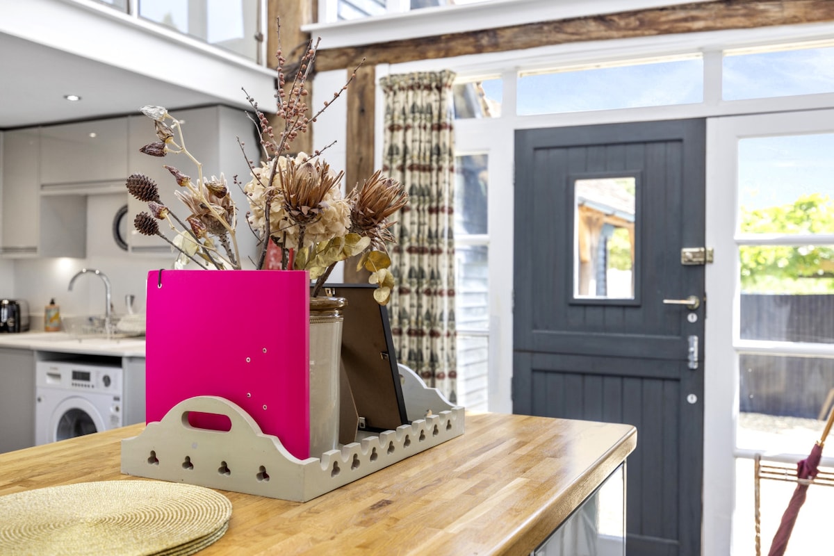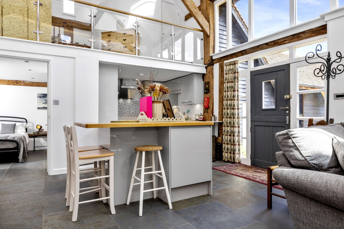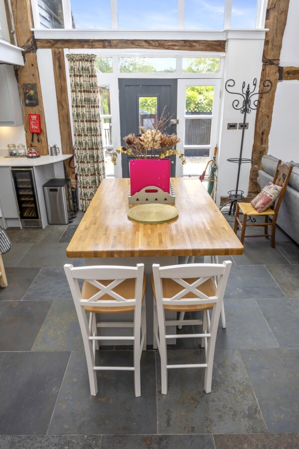 Swimming pool available at owner's discretion. Booked and paid for onsite. May - September between 10:00 AM to 6:00 PM at an EXTRA COST of £25 per day.Step into the barn, and your gaze is immediately drawn to the expansive open-plan area with soaring ceilings. The kitchen island beckons with its sleek design, perfect for enjoying a glass of wine while preparing your favorite dishes. Pull up a stool and immerse yourself in the culinary symphony as you whip up delightful treats. Equipped with a dishwasher, fridge/freezer, toaster, kettle, and washer/dryer, this kitchen ensures that every culinary need is met.