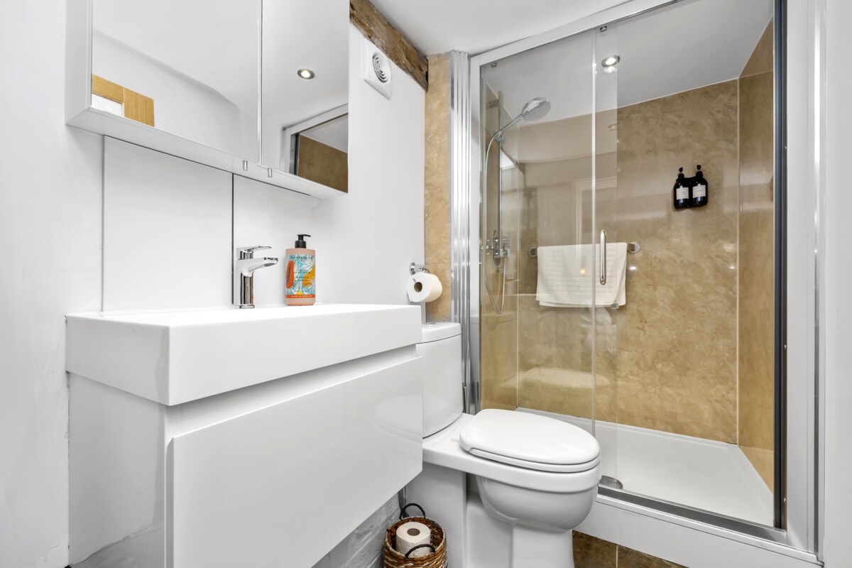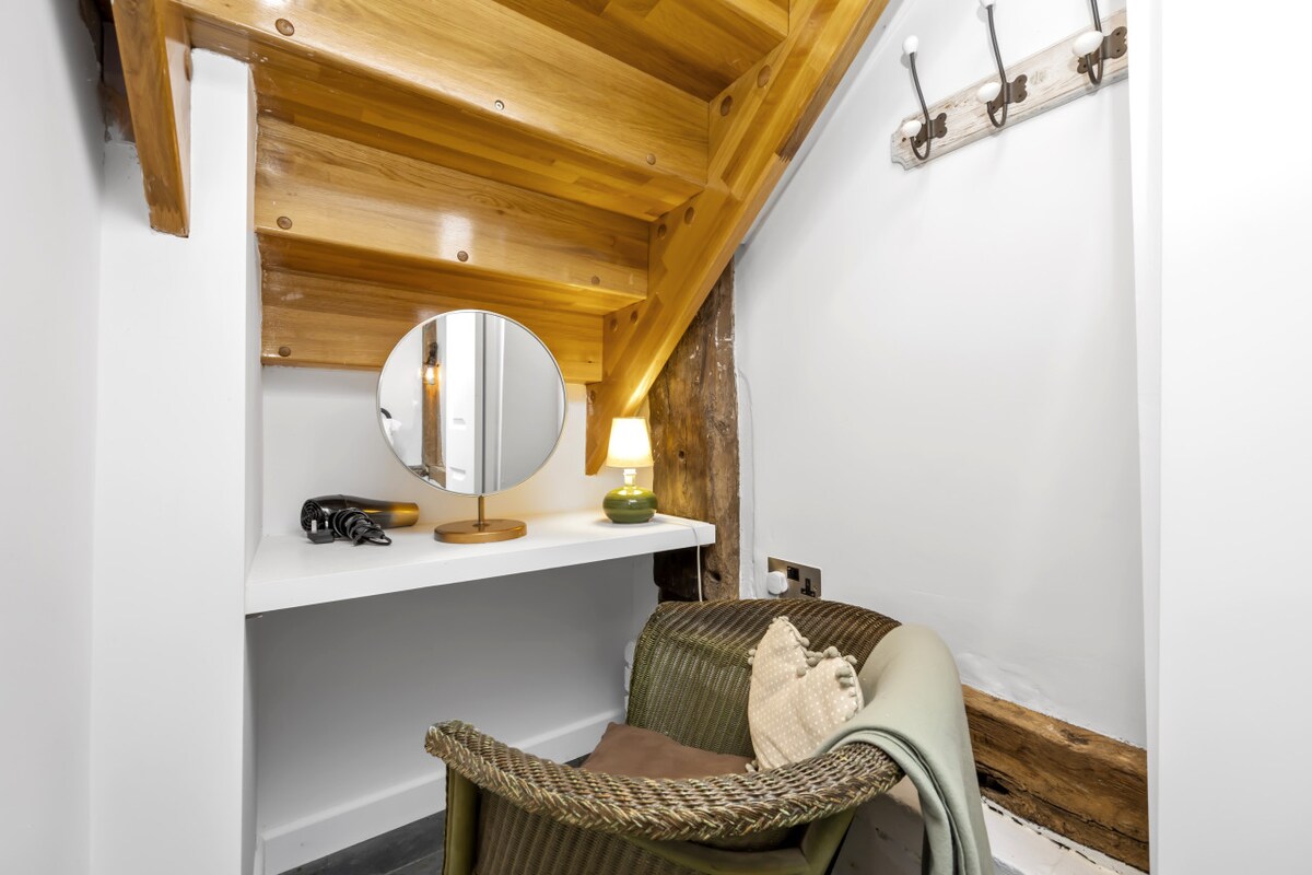 On the ground floor, a tranquil bedroom awaits, offering respite after a day of exploration. Discover a charming dressing table area, complete with a chair and a convenient hair dryer. Adjacent, the ensuite shower room offers a rejuvenating sanctuary, where you can wash away the cares of the day in blissful solitude.