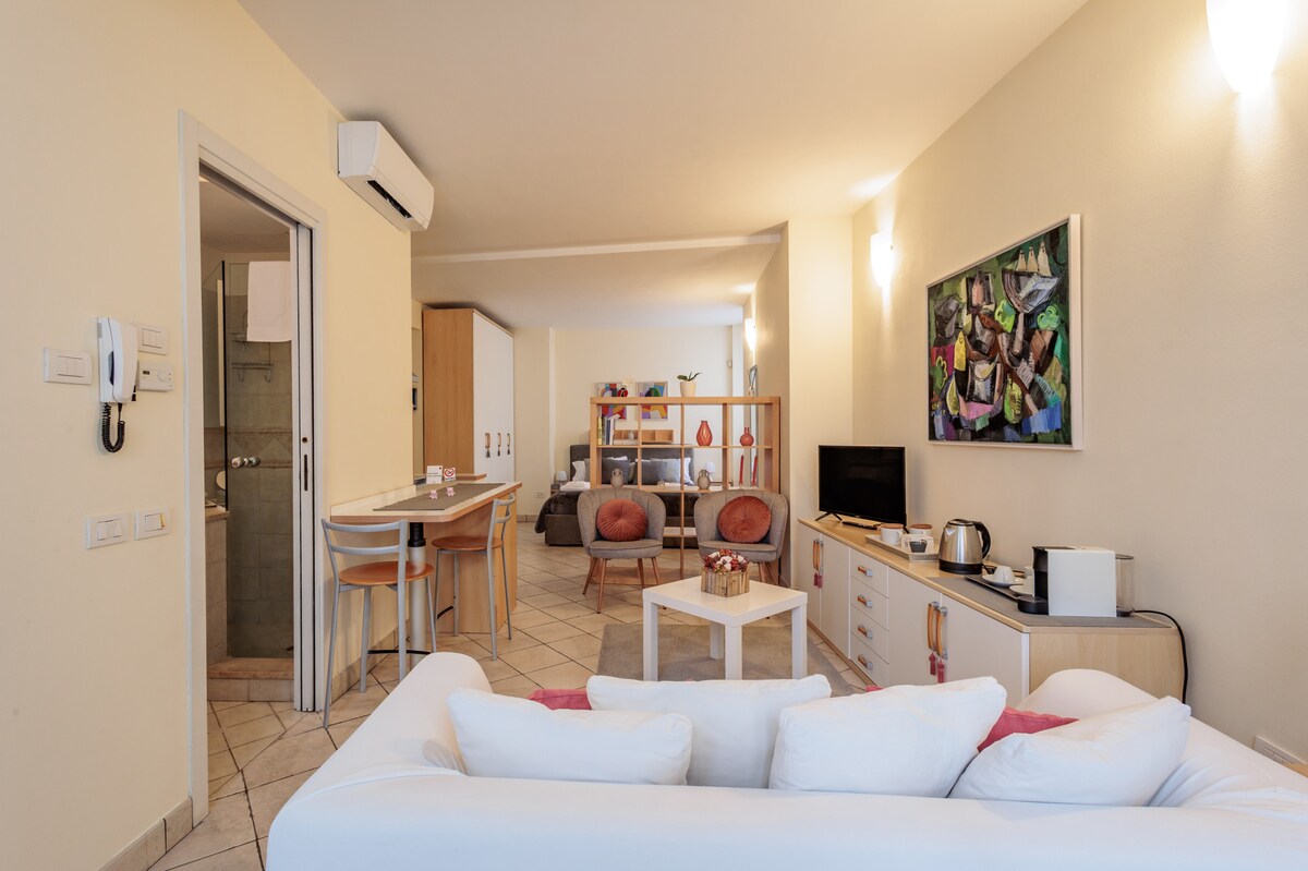 50 sqm studio apartment in the heart of Bergamo, located in Piazzetta di Santo Spirito. Situated on the third floor with a elevator that leads directly into the apartment, it accommodates up to 3 guests. Set within the ZTL (limited traffic zone), it offers all the comforts for a practical and relaxing stay. Its central location allows you to easily walk to the city’s main shops, restaurants, and historical attractions, fully experiencing Bergamo’s authentic atmosphere.