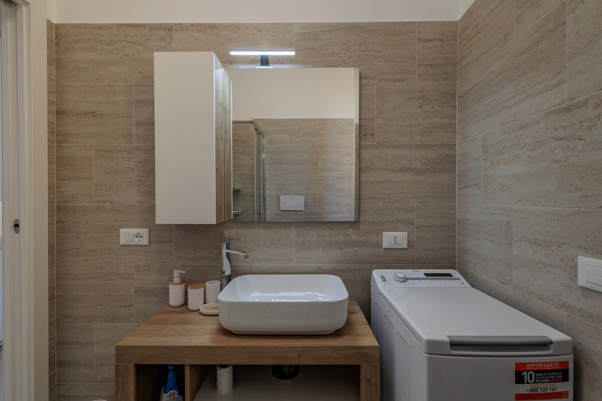 - BATHROOM with shower, washing machine, sink, bidet, and WC.