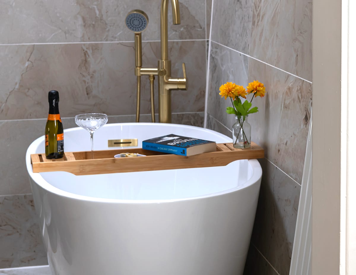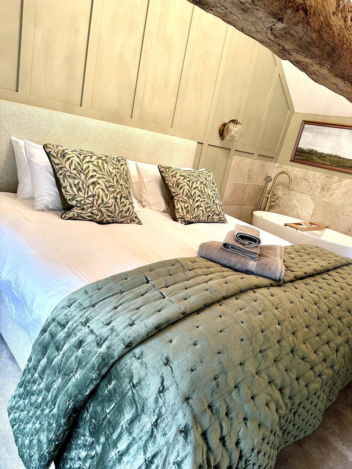 Upstairs there is a double bedroom with a UK Superking bed, SMART TV, 400 + thread-count cotton sheets, freestanding bath and fluffy bath towels.