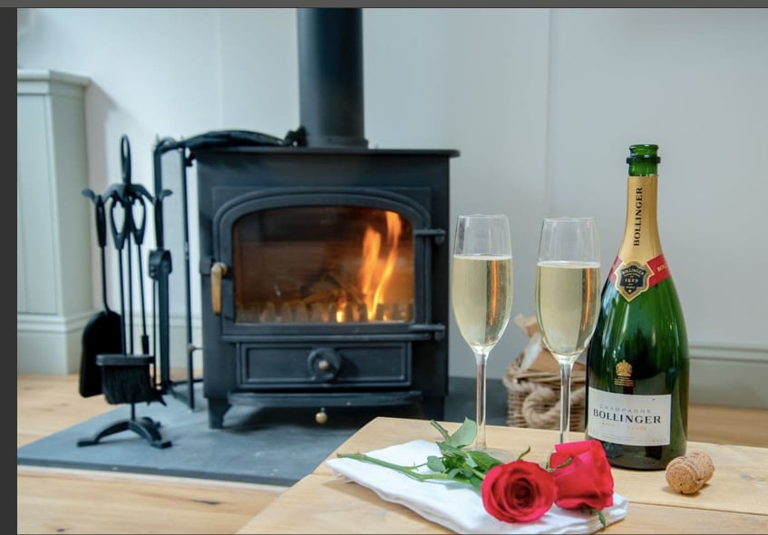 The delightful open plan living/dining room/kitchen has every appliance you should need as well as a log-burner and wall-mounted Smart TV, quality appliances, including a washing machine, dishwasher, 6-ring hob, double oven, fridge with freezer box and microwave.