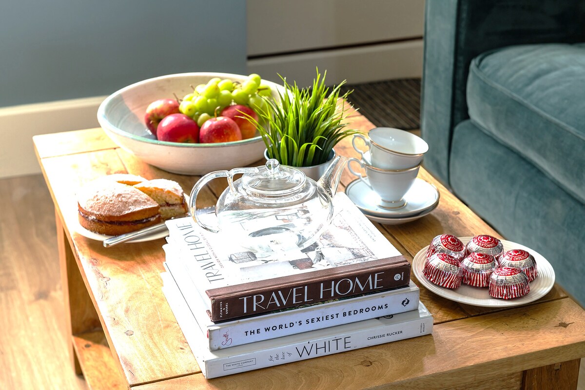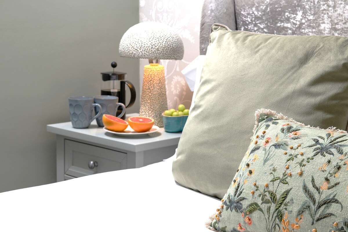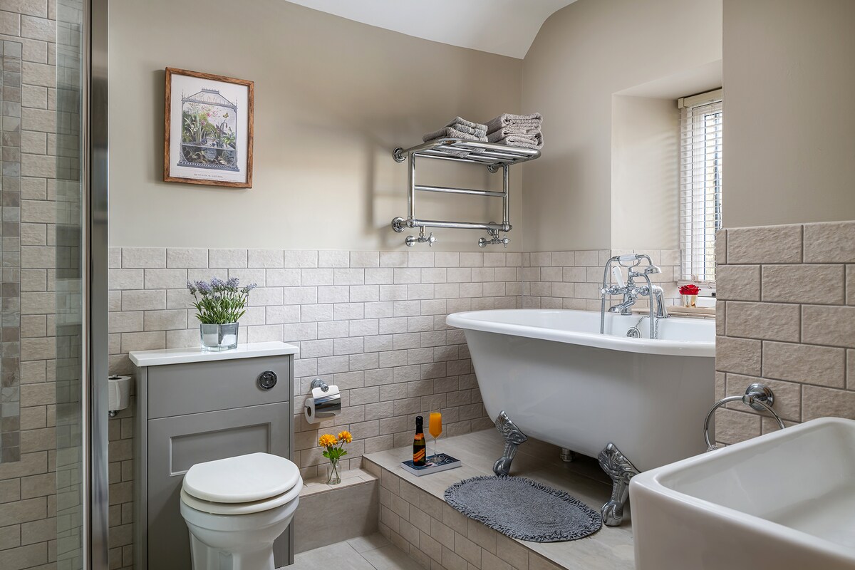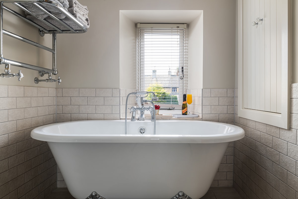 The first floor bedroom provides a place of sanctuary with its 500+ thread-count cotton bed linen, large king size bed and wall-mounted Smart TV. The feature roll-top bath and separate rain shower, in the bathroom complete with Egyptian cotton towels provide a place to relax and unwind after a day out.