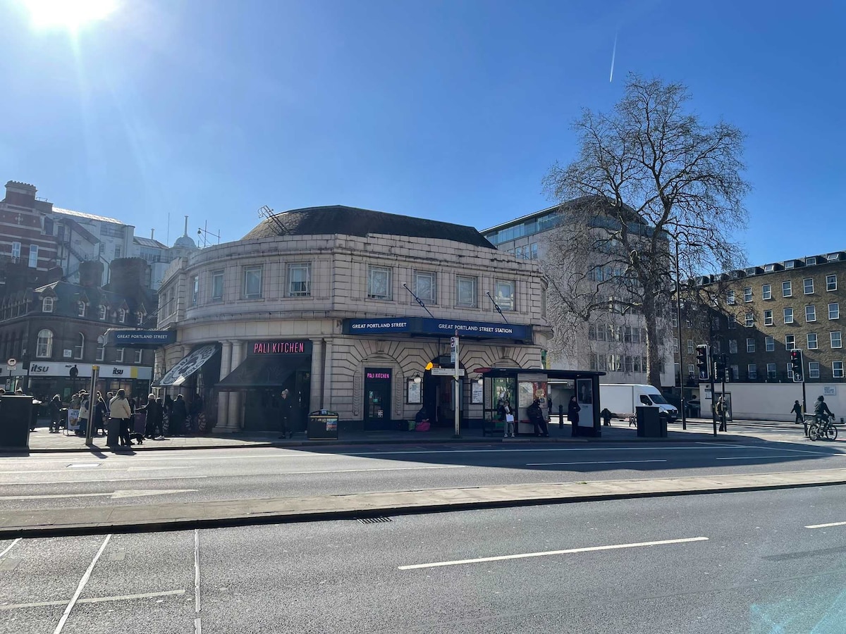 -2-min walk to Great Portland Street Station (Circle, Hammersmith & City, Metropolitan Lines)