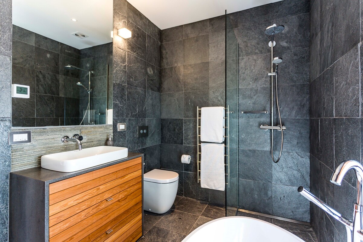 The elegant ensuite bathrooms are fully equipped with underfloor heating and rain head showers. The master ensuite is a luxurious retreat, where you can enjoy a magnificent lake view centre stage as you soak in the freestanding bathtub. There is also a convenient separate guest toilet on the main level.