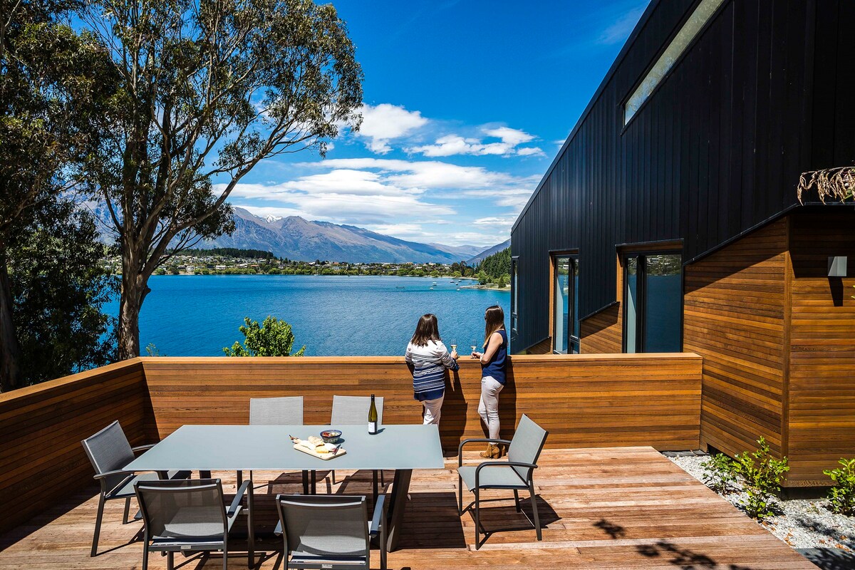 A peaceful retreat, yet still so convenient! Lakehouse Joela is positioned so close to the lake that you can hear the waves lapping and watch the boats zipping past. Guests love being only a 15-minute flat stroll away from central Queenstown. At the bottom of the private driveway is the popular Frankton Walkway track – fantastic for running, biking, or walking. This prestigious Park Street address is highly coveted, providing the ideal balance of seclusion, awe-inspiring landscapes, and the convenience of being near town.