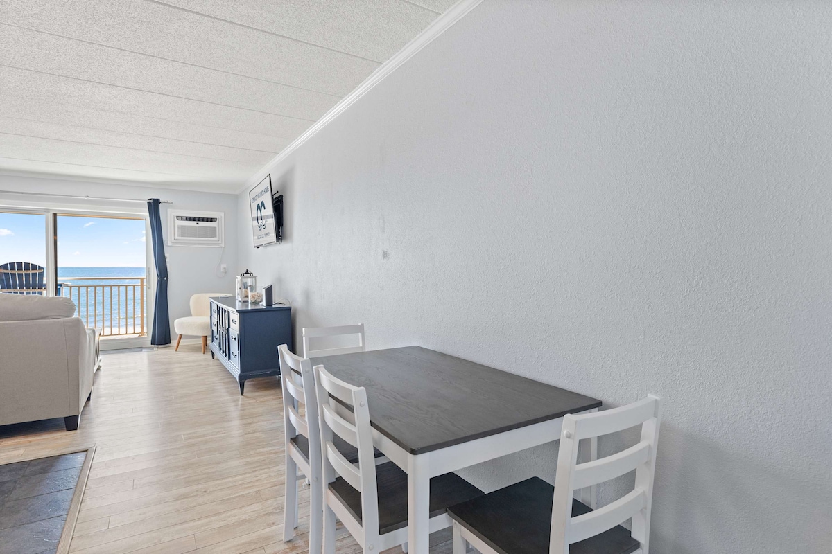 Welcome to Salty Sands 302, a bright and airy 1-bedroom, 1.5-bath oceanfront condo designed for effortless beach living. Perched on the third floor with elevator access, this coastal retreat offers panoramic ocean views, a private balcony, and unbeatable access to the sand right outside your door.Start your day with fresh coffee from the Keurig pod-style coffee maker as you watch the sunrise over the Atlantic. When it’s time for lunch, stroll over to Dumser’s Dairyland Drive-In or Anthony’s Liquors, and later, enjoy dinner and drinks at nearby favorites like Fager’s Island, Ristorante Antipasti, or The Hobbit — all just minutes away.