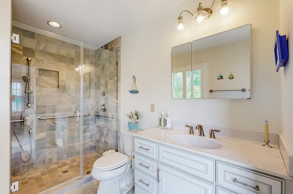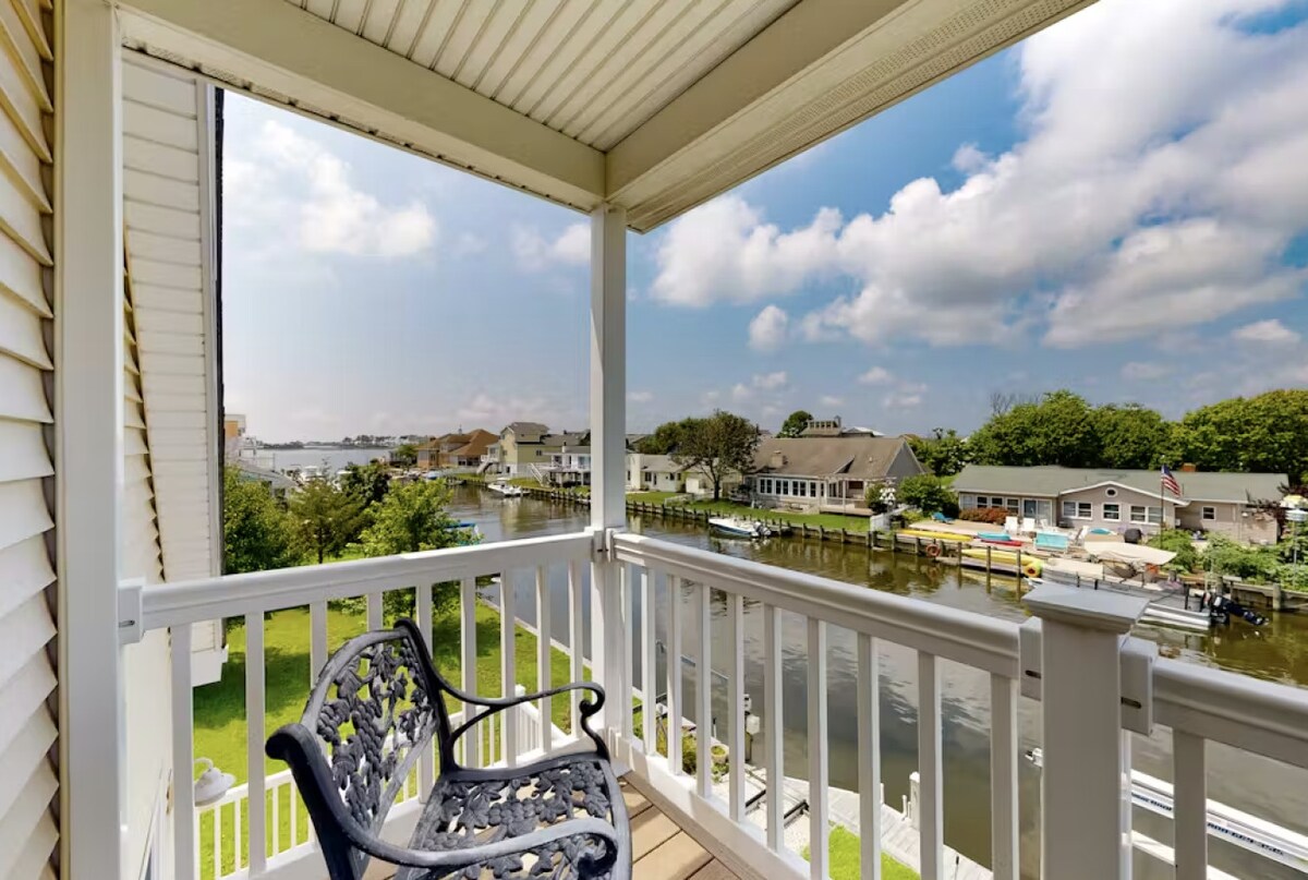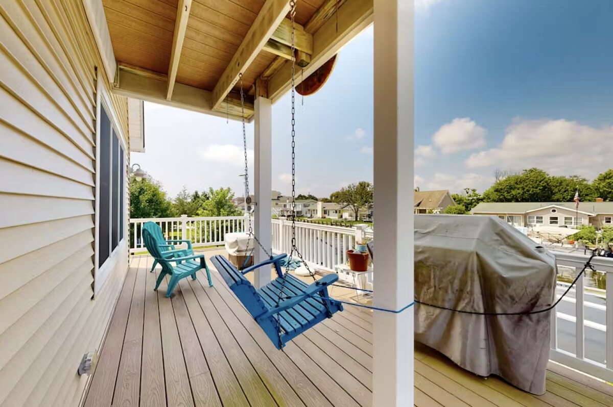 Outdoor living is just as special as the interior. Scenic canal views can be enjoyed from furnished balconies at both the front and back of the house. The expansive deck includes a gas grill, porch swing, and outdoor dining space, making it the perfect spot for cookouts and evening relaxation. In the yard, a wood-burning firepit invites you to gather for marshmallows and stargazing under the clear Delaware skies. You’ll also find bicycles to explore the neighborhood and an outdoor shower for rinsing off after a day on the water.