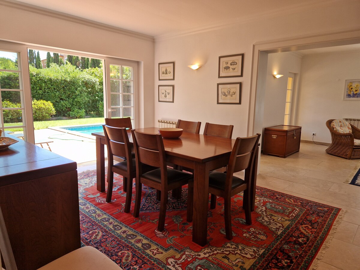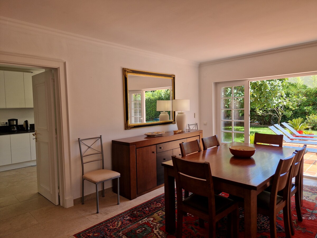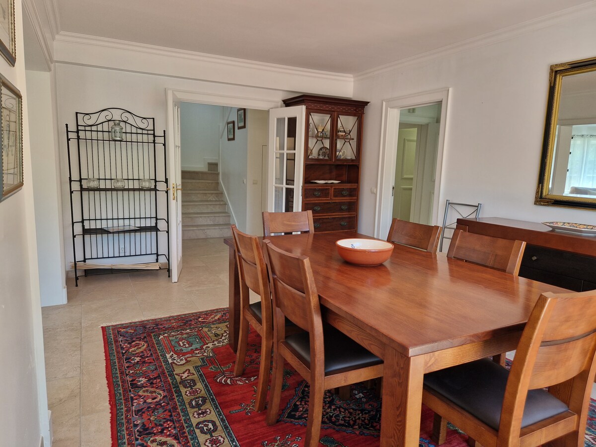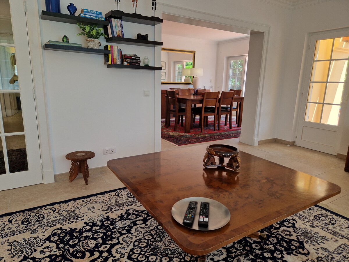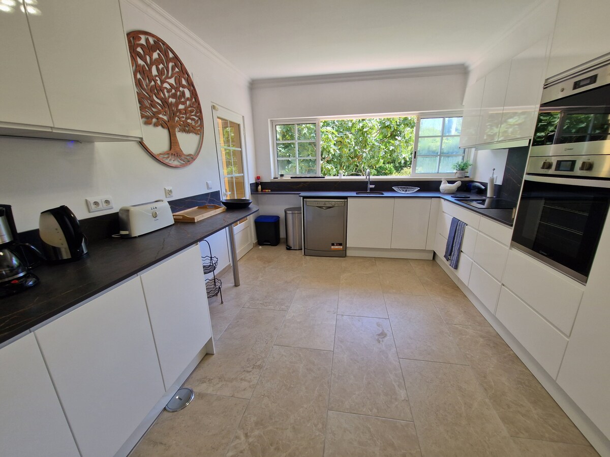 The place is great! We travelled with little kids, and they had everything we needed for them! The house feels homy. The display of the house made it easy to accommodate the kids with different sleep schedules really well. The backyard is great. My kids loved the pool and it faces the kitchen and living room what made it easy to keep your eyes on them. The kitchen is well equipped. Susana was great with us! My husband loves golf and the golf course is in front of the house. We would definitely look for the same house if we go back to Sintra! The house is exactly as it was described