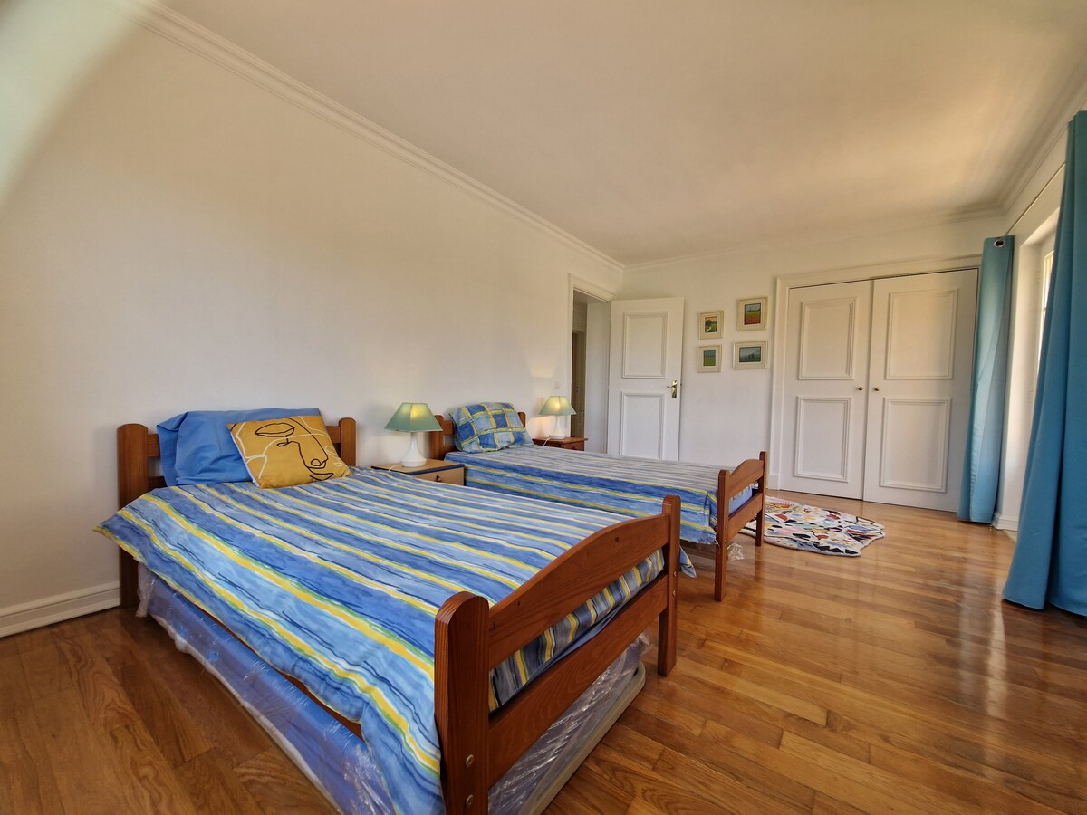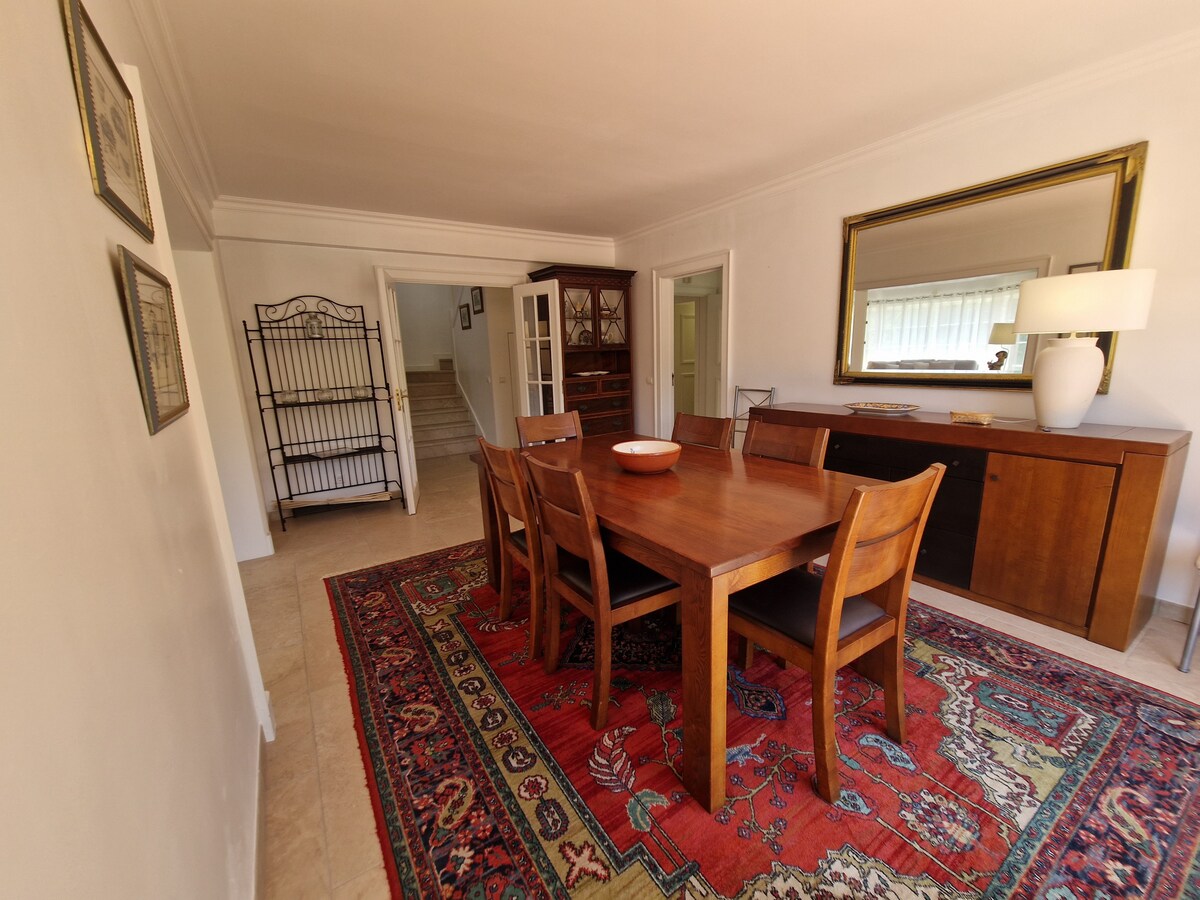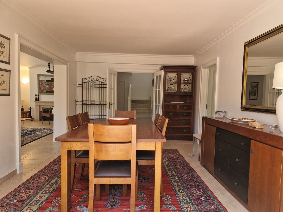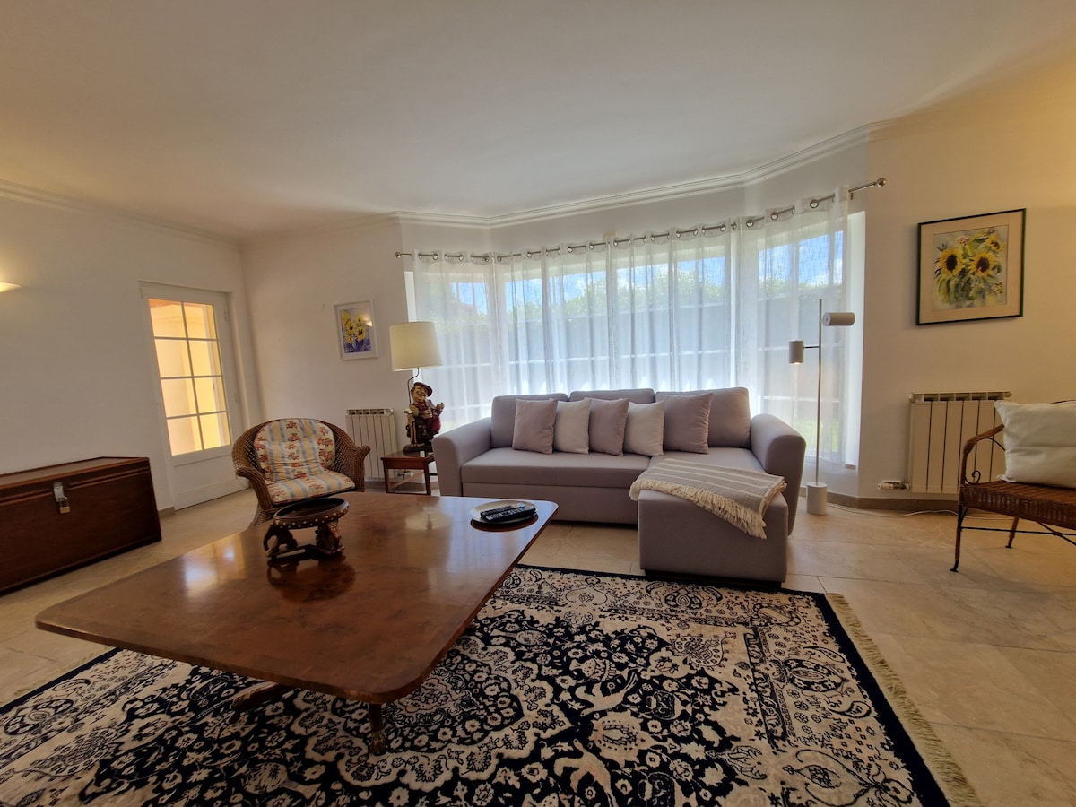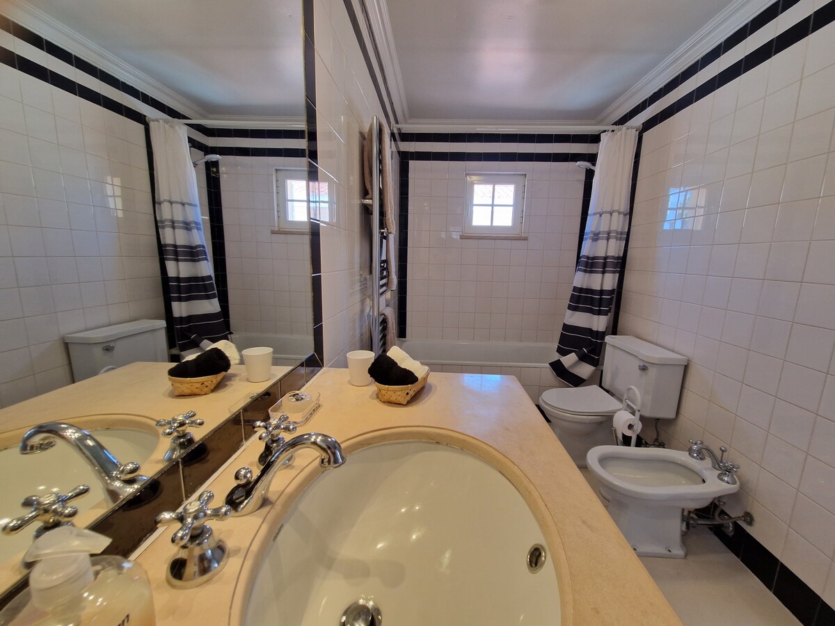 The place is great! We travelled with little kids, and they had everything we needed for them! The house feels homy. The display of the house made it easy to accommodate the kids with different sleep schedules really well. The backyard is great. My kids loved the pool and it faces the kitchen and living room what made it easy to keep your eyes on them. The kitchen is well equipped. Susana was great with us! My husband loves golf and the golf course is in front of the house. We would definitely look for the same house if we go back to Sintra! The house is exactly as it was described