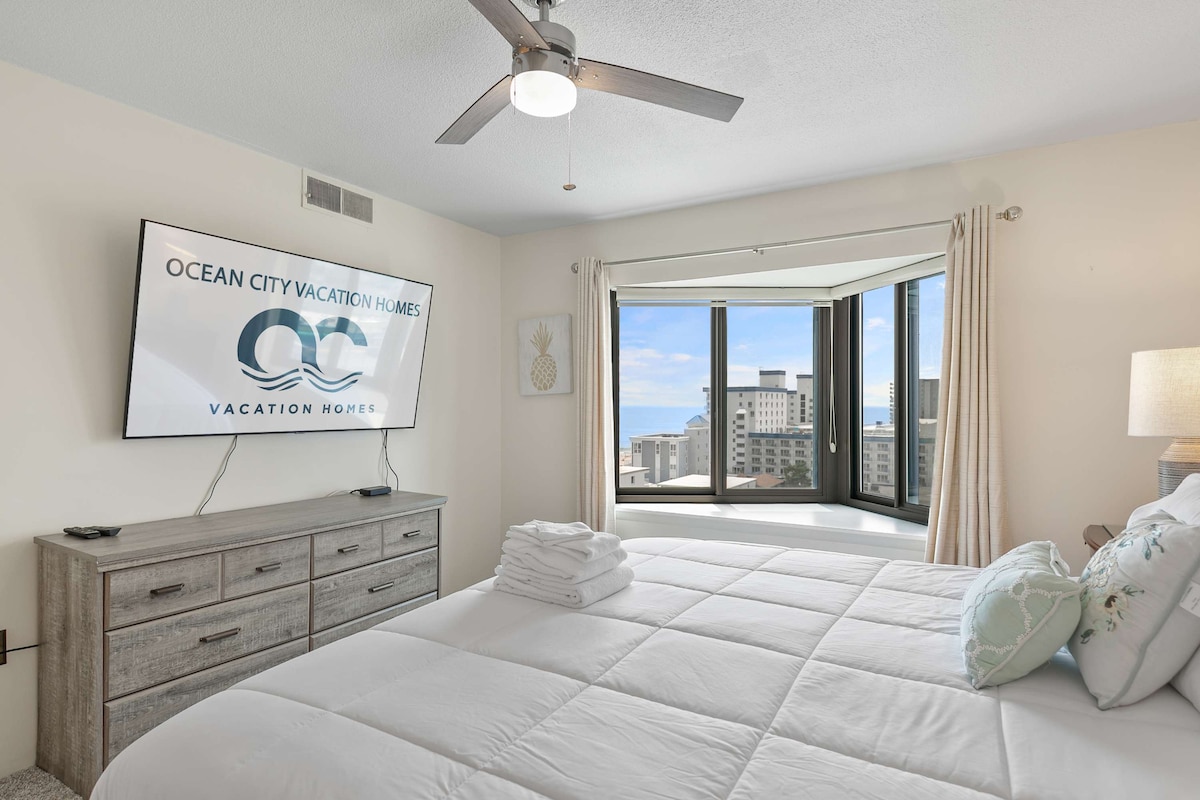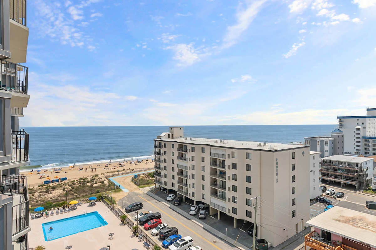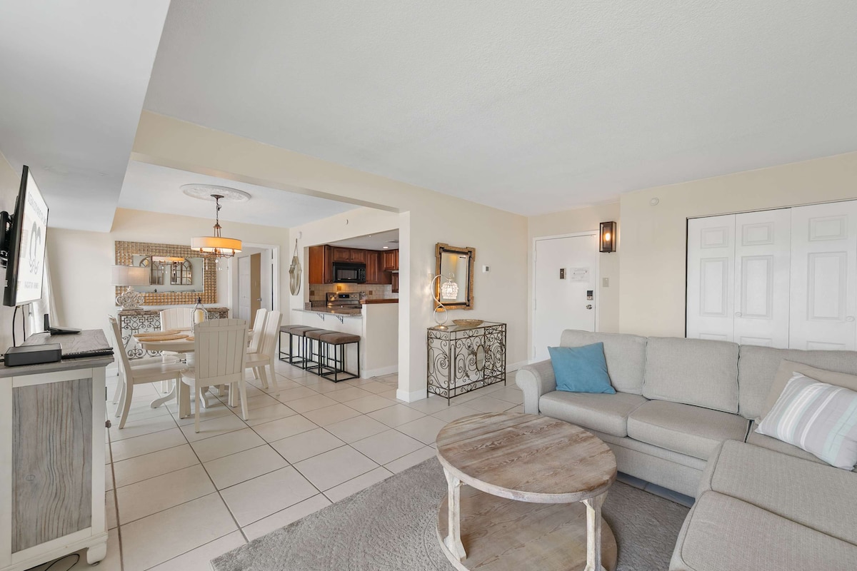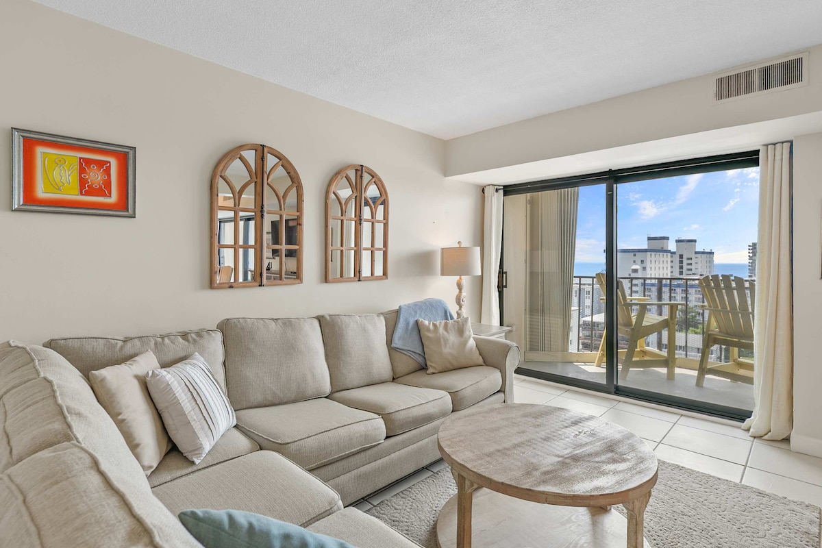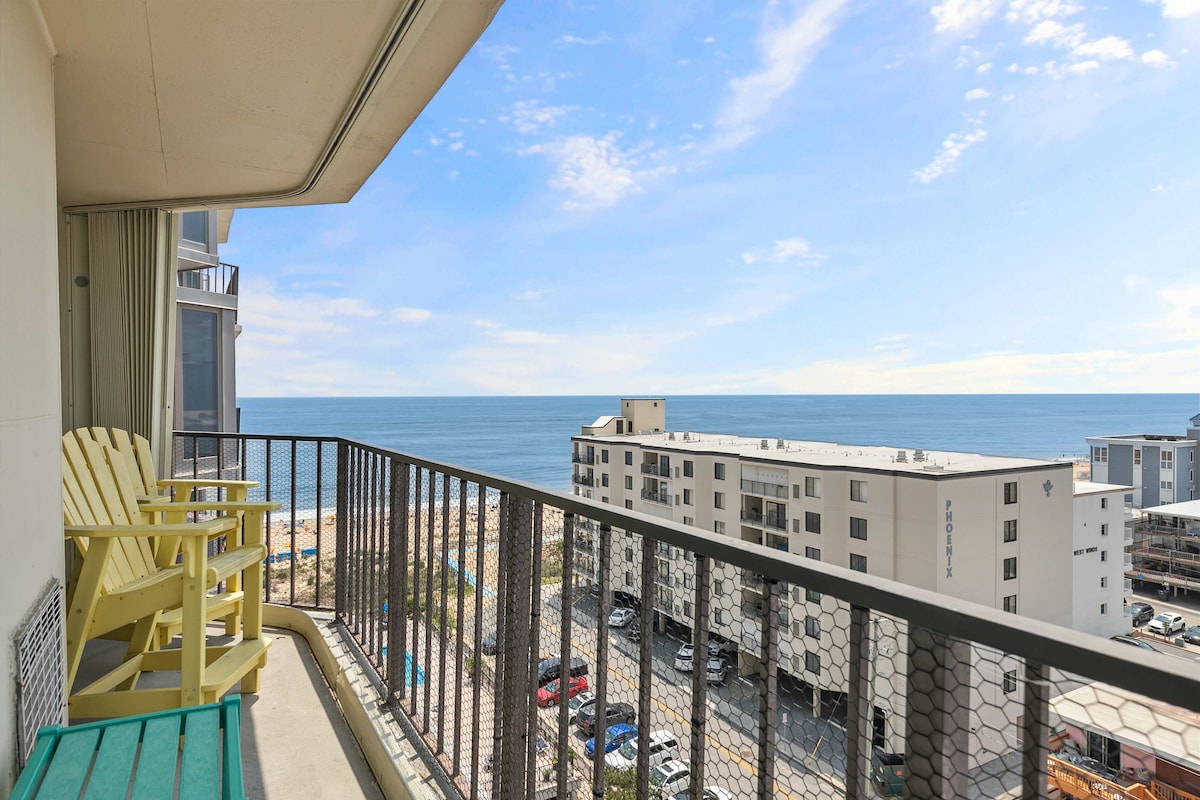 Perched on the tenth floor of the 9400 Building, this 2-bedroom, 2-bath condo offers sweeping views of the Atlantic Ocean and the lively midtown skyline. Step onto your private balcony to watch the sunrise or unwind after a beach day with an evening drink and the sound of waves in the distance.Inside, you’ll find an open-concept living and dining area perfect for gathering with family or friends. The modern kitchen features sleek countertops, updated appliances, a Keurig pod-style coffee maker, and a Black+Decker drip coffee maker for your morning routine. After dinner, settle into the comfortable living space for a movie night or plan tomorrow’s beach adventure.