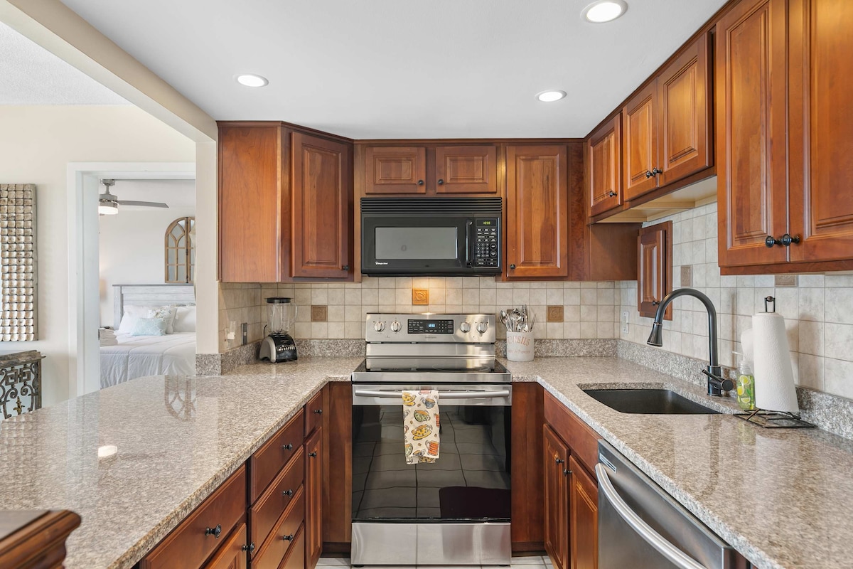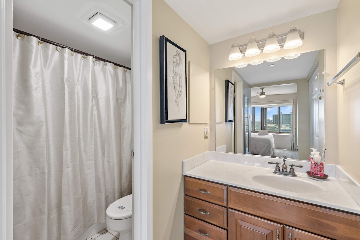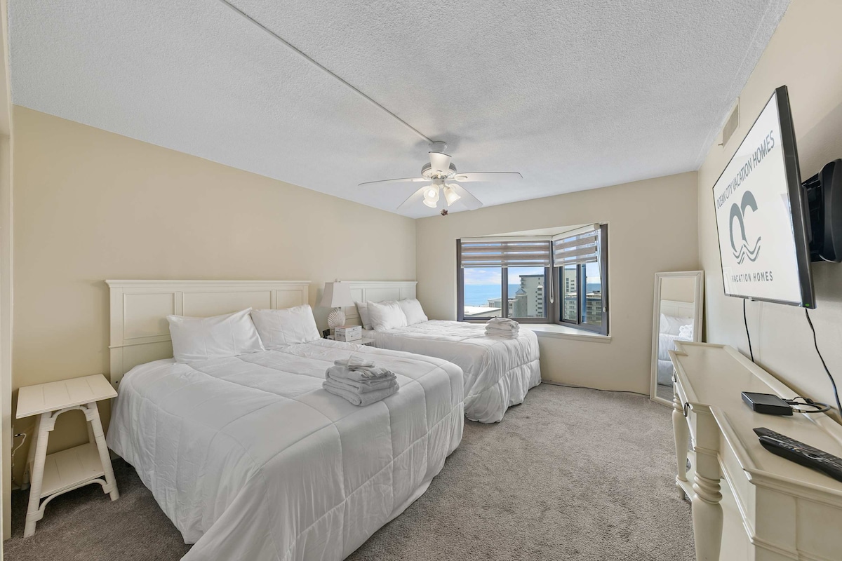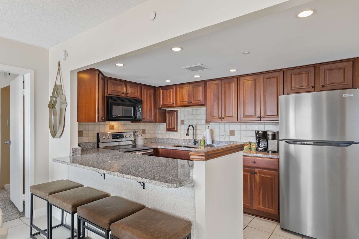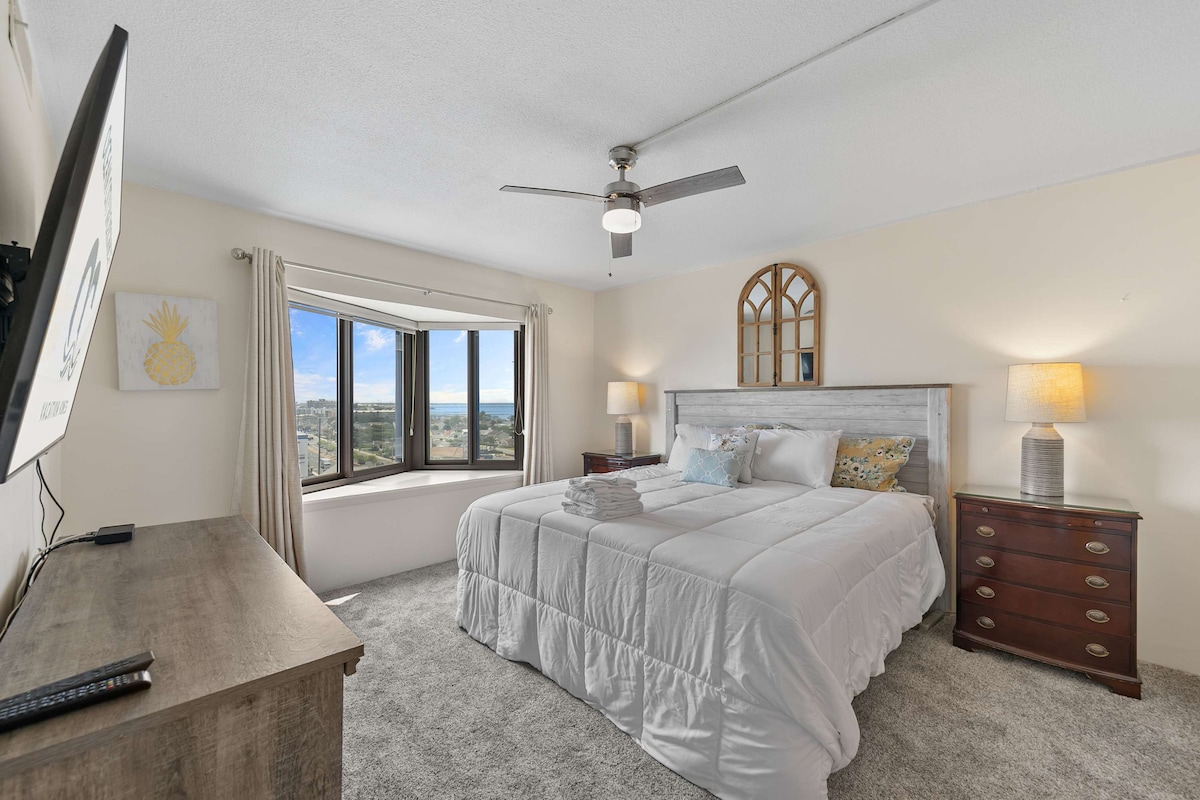Perched on the tenth floor of the 9400 Building, this 2-bedroom, 2-bath condo offers sweeping views of the Atlantic Ocean and the lively midtown skyline. Step onto your private balcony to watch the sunrise or unwind after a beach day with an evening drink and the sound of waves in the distance.Inside, you’ll find an open-concept living and dining area perfect for gathering with family or friends. The modern kitchen features sleek countertops, updated appliances, a Keurig pod-style coffee maker, and a Black+Decker drip coffee maker for your morning routine. After dinner, settle into the comfortable living space for a movie night or plan tomorrow’s beach adventure.