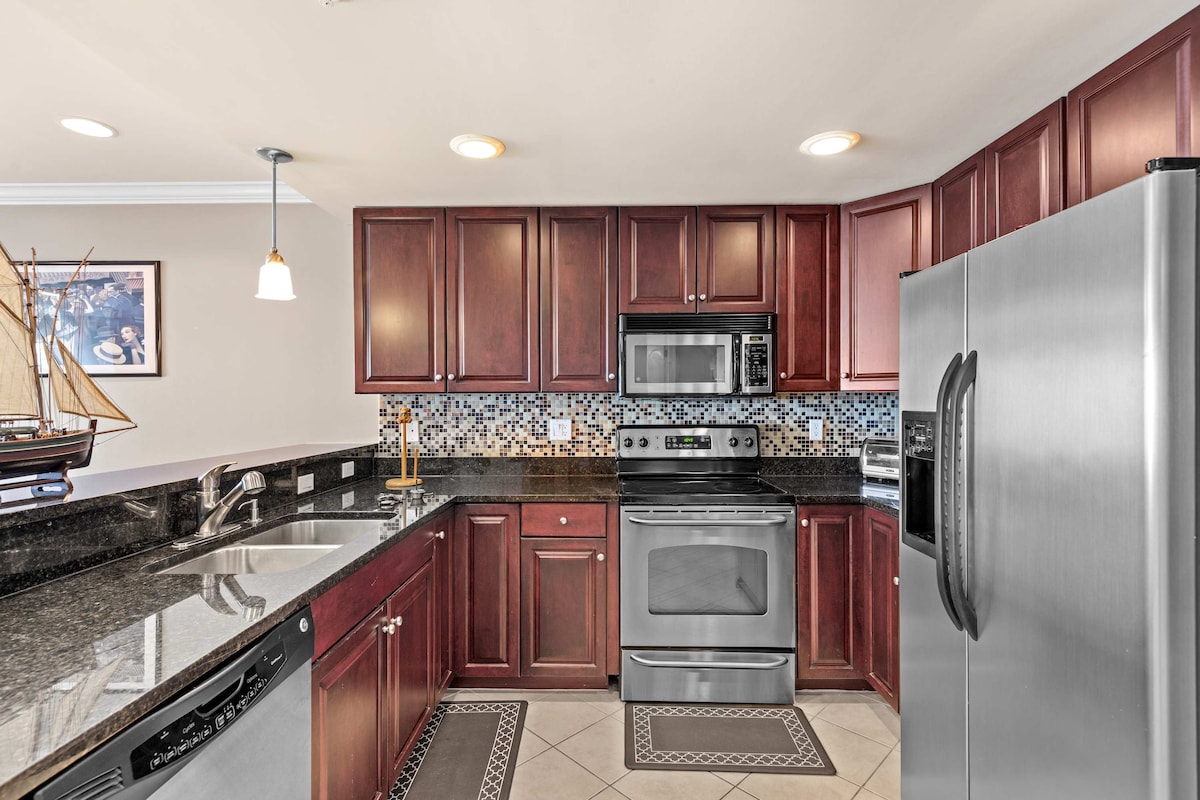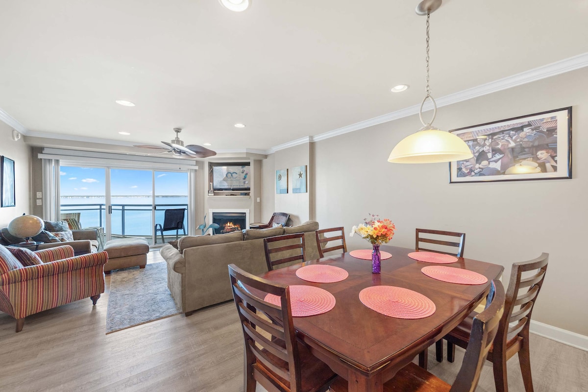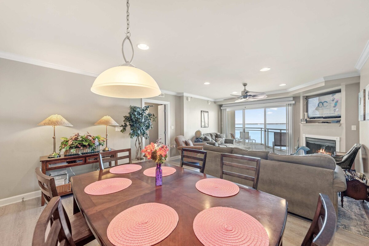 Experience the best of bayside living at this luxurious 3-bedroom, 3.5-bath direct bayfront condo on 46th Street in Ocean City, Maryland. This spacious 1,727-square-foot retreat offers panoramic views of the bay and unmatched comfort just a short stroll from the beach, dining, and local attractions.Step onto your private balcony to watch the sun set over the water, or relax inside the light-filled living area featuring multiple sofas, recliners, and a gas fireplace. Gather for movie nights on the streaming-capable flat-screen TVs, or prepare family meals in the open kitchen with polished granite counters, stainless-steel appliances, and a Keurig pod-style coffee maker conveniently located beside the refrigerator.