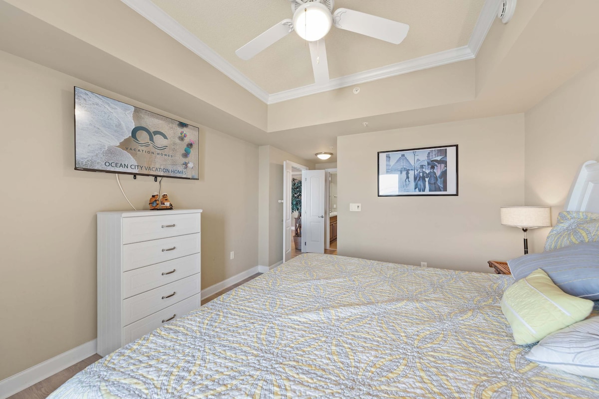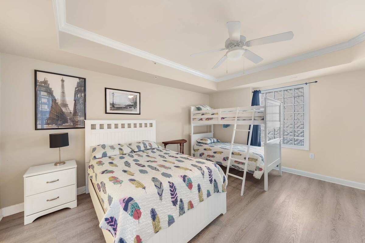 Each bedroom is a private suite with its own bathroom, giving everyone space to unwind. The building’s indoor and outdoor pools—including a bayfront pool with grilling areas—make it easy to enjoy summer days, while the convenient elevator and two parking spaces ensure a smooth, stress-free stay.