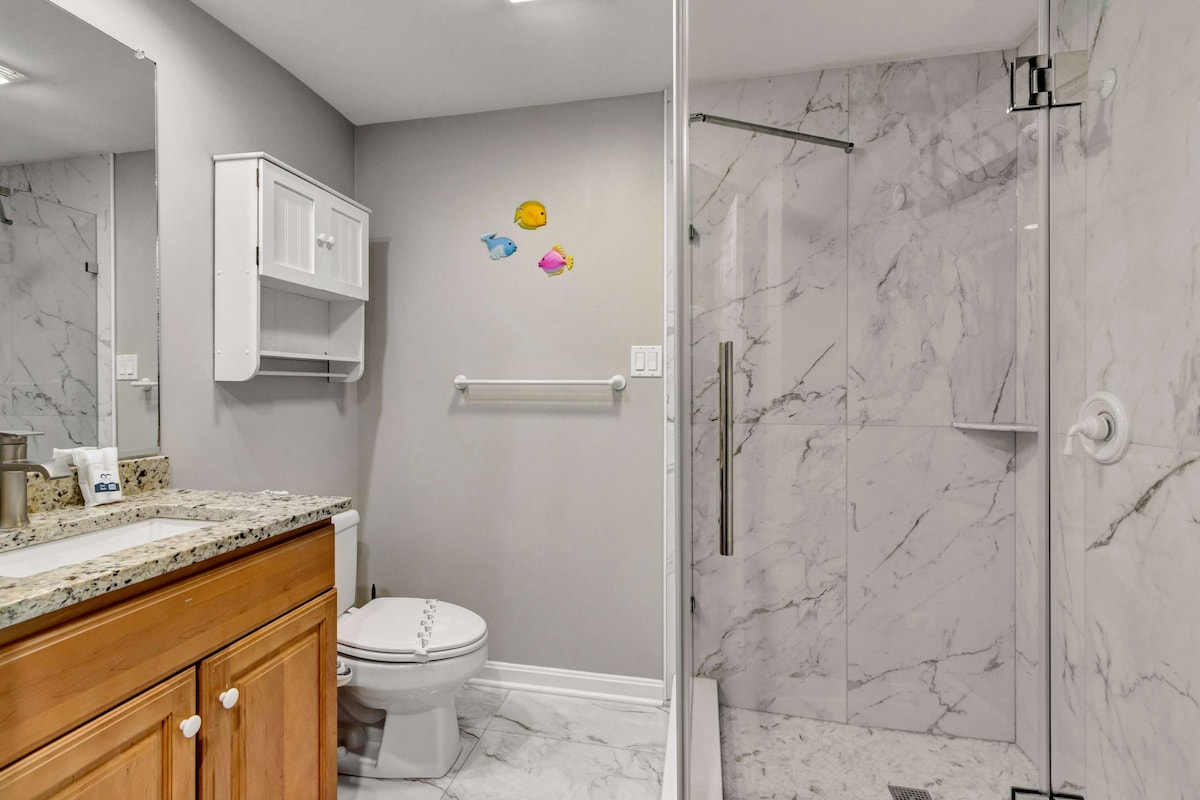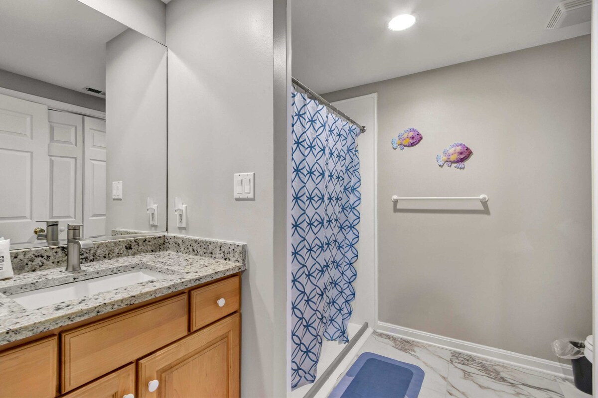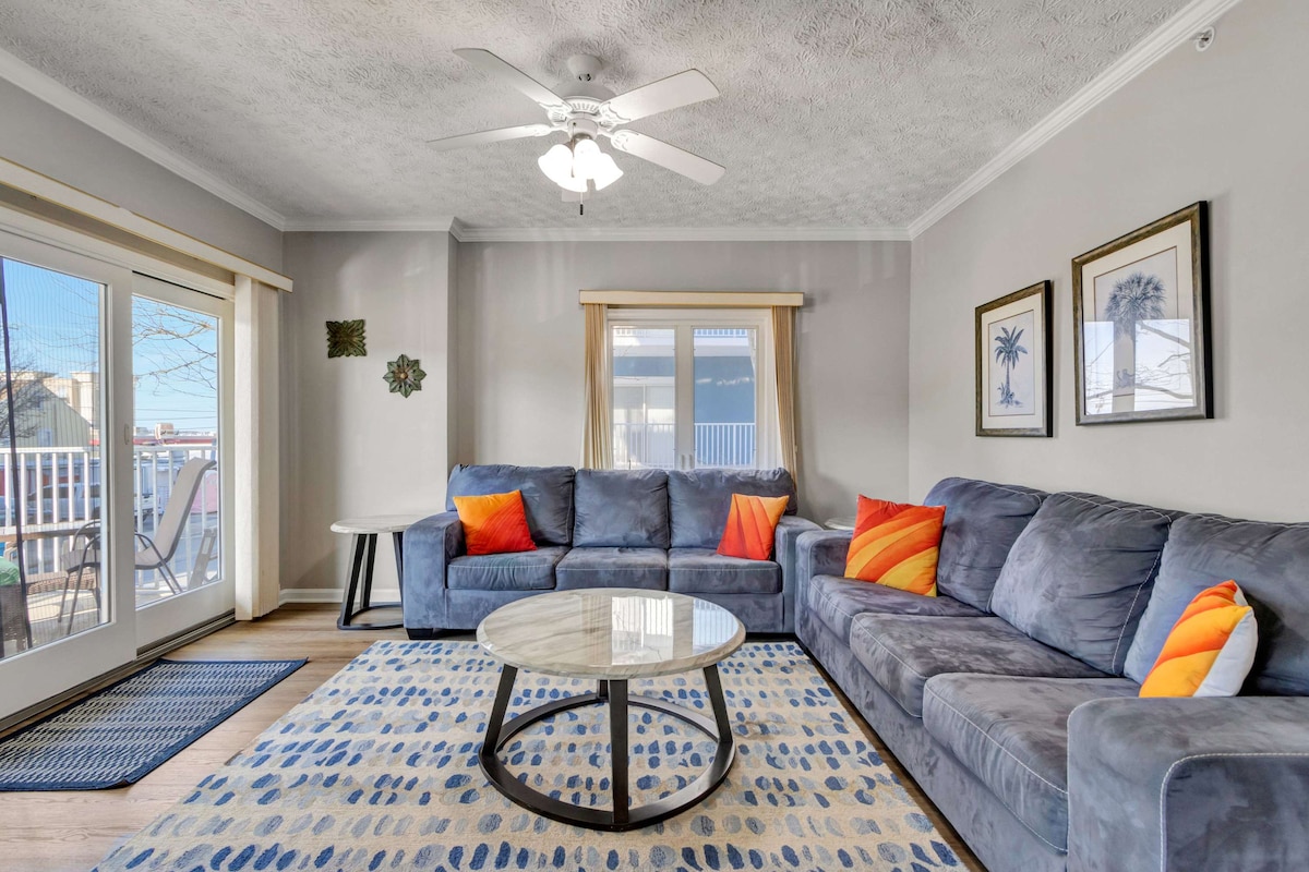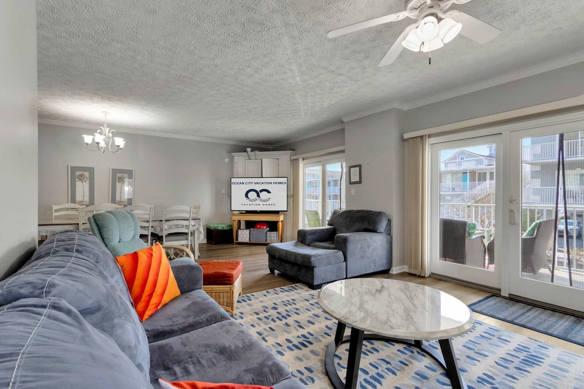 Welcome to Sea Palms 101, a bright and spacious 3-bedroom, 3-bath coastal retreat designed with your comfort in mind. Located just steps from Ocean City’s beautiful beaches, this ground-level condo offers plenty of room for up to 10 guests and is wheelchair accessible, including two accessible shower areas.Step inside to an inviting open-concept living area filled with natural light and beachy charm. The living room provides ample seating for movie nights or family gatherings, while the fully equipped kitchen has everything you need to prepare meals with ease. Enjoy a morning coffee or an evening drink on your private balcony, then head out for a day of fun on the sand.