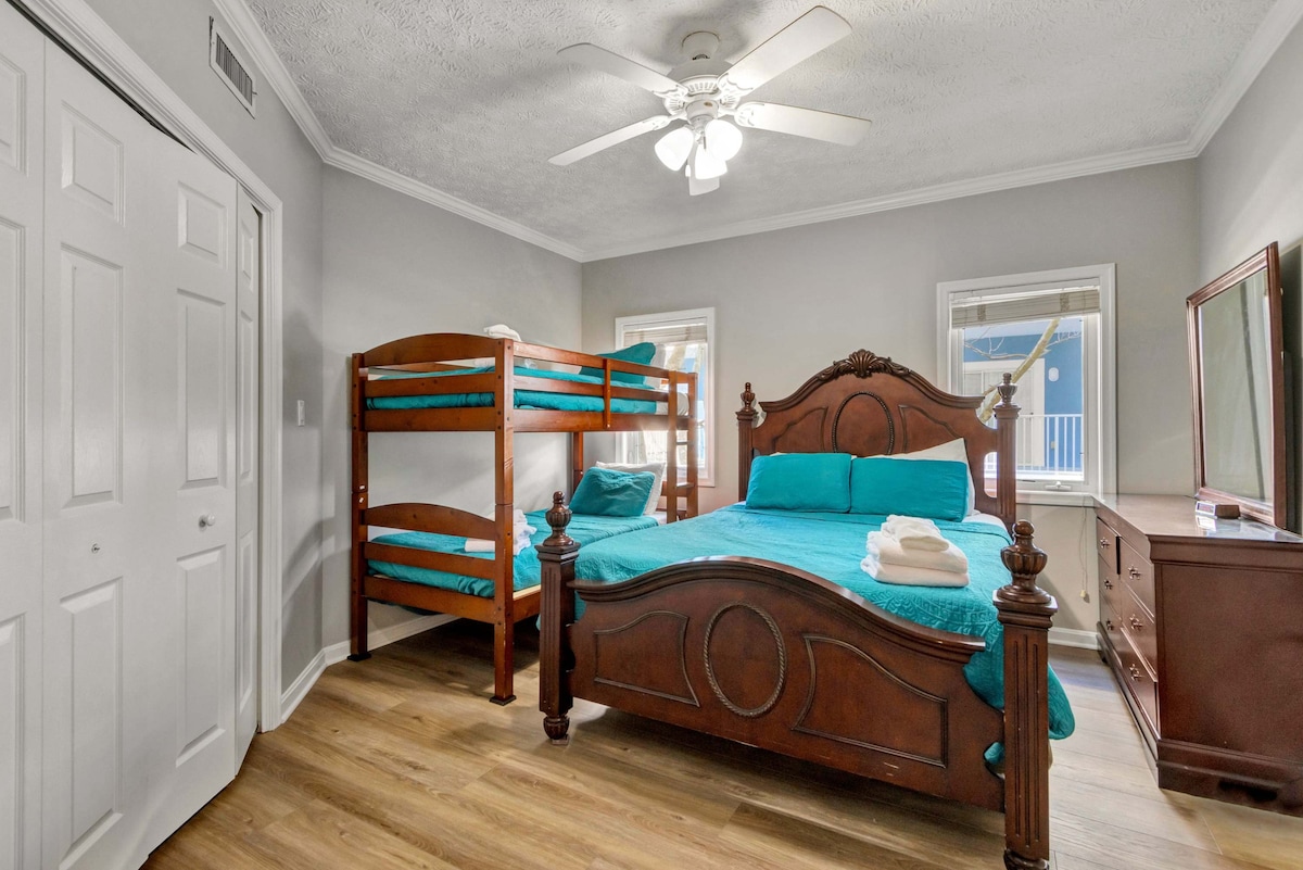 ✹ Bedroom 2 – Queen bed + Twin-over-Twin bunk bed