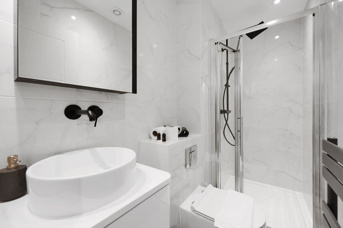 โ Private shower room with modern finishes.