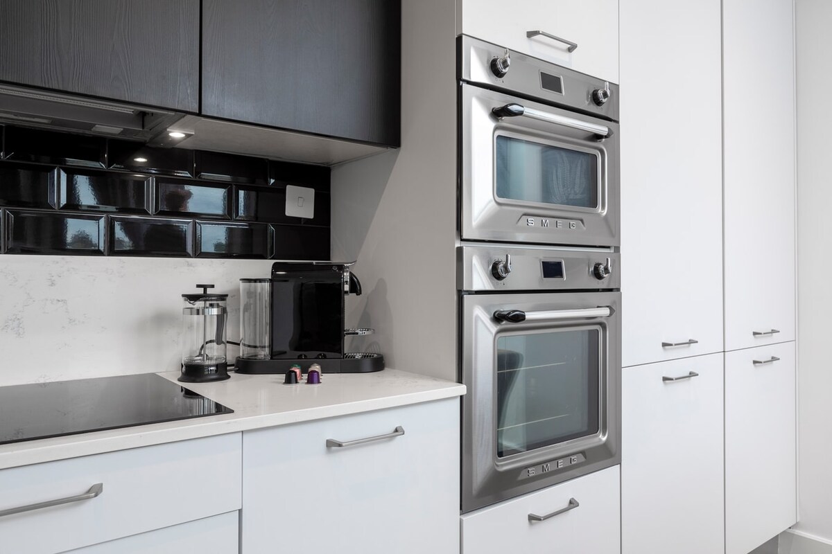- A fully equipped kitchen with a Nespresso machine, dishwasher