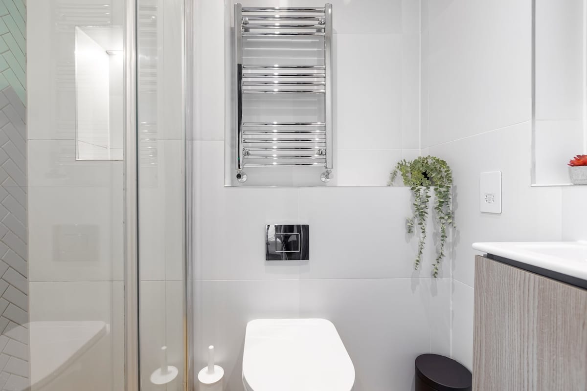 Ensuite bathroom with shower.