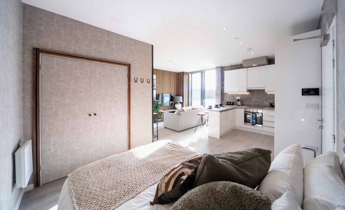 Enjoy modern furnishings, a fully equipped kitchen with washing machine and dishwasher, a spacious bathroom with shower, a cosy bedroom with ample storage and a private balcony.Take advantage of the Free Parking, super fast WiFi Throughout+Smart TV, access to a shared gym & workspace