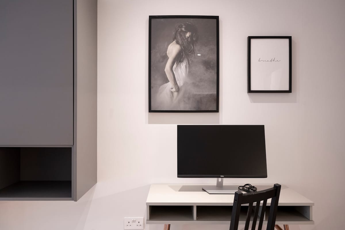 - Smart TV, desk and 27-inch monitor with HDMI cable.