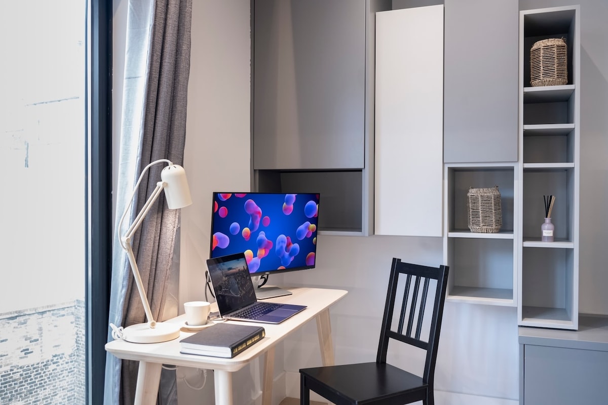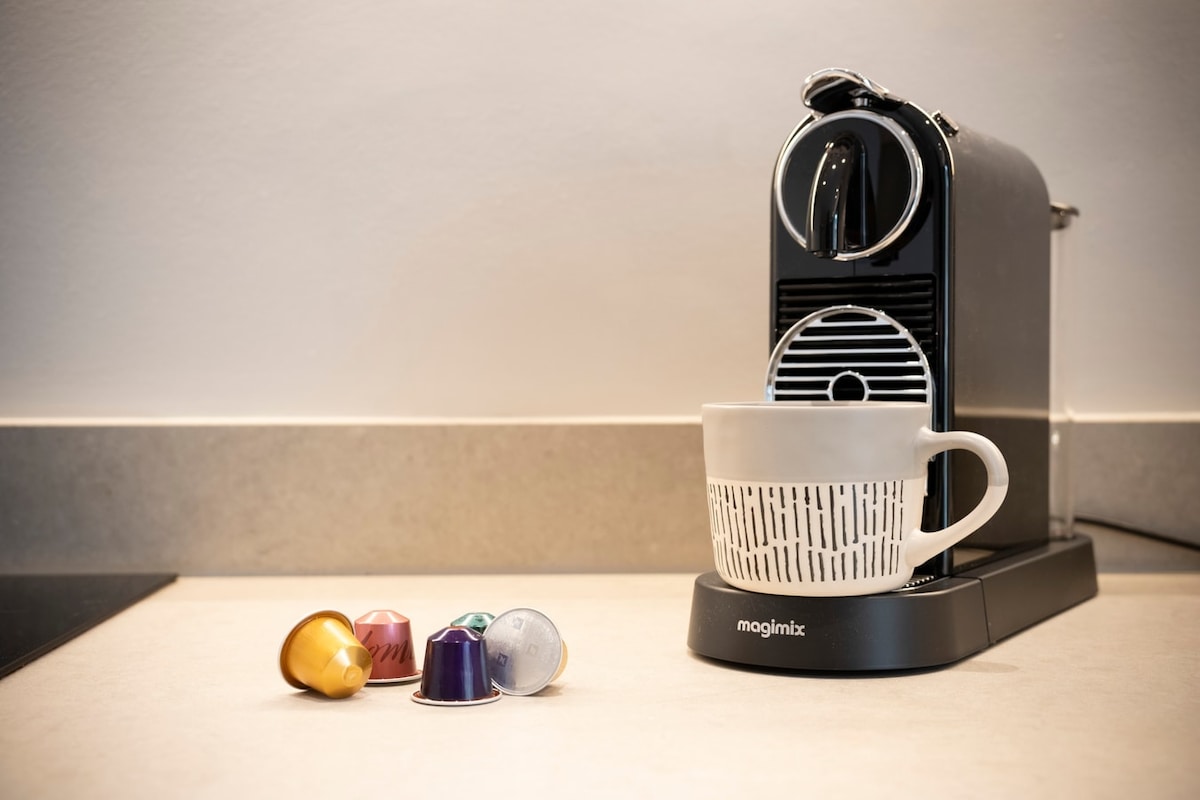 - The kitchen is fully equipped with a Nespresso machine, a dishwasher, a microwave, an induction cooker, and an oven.