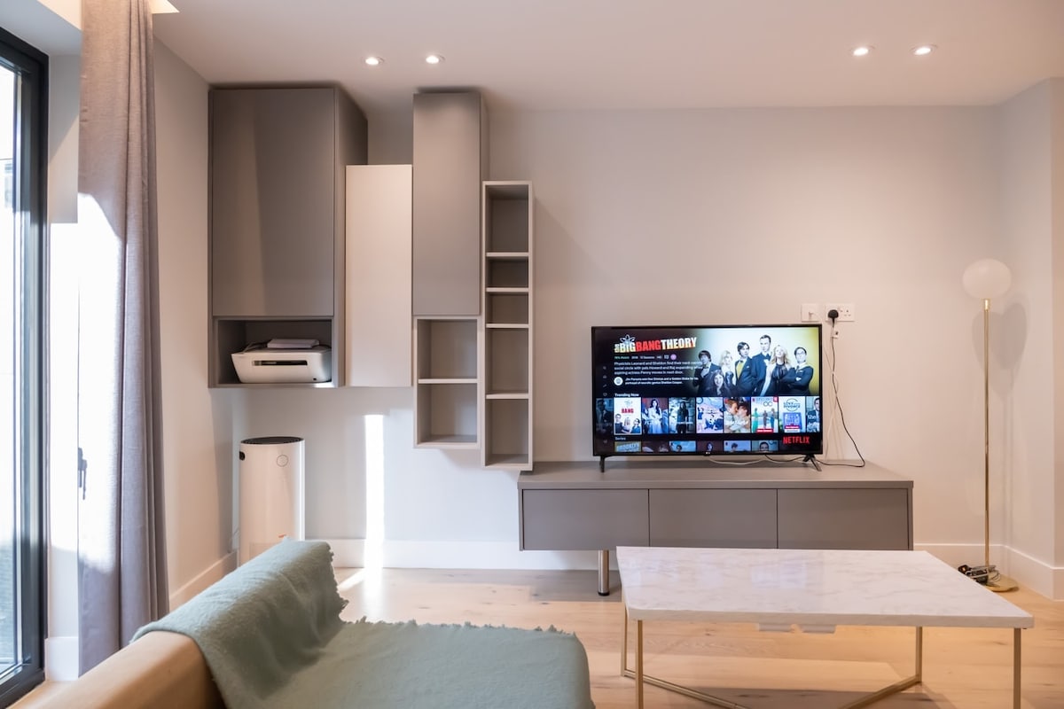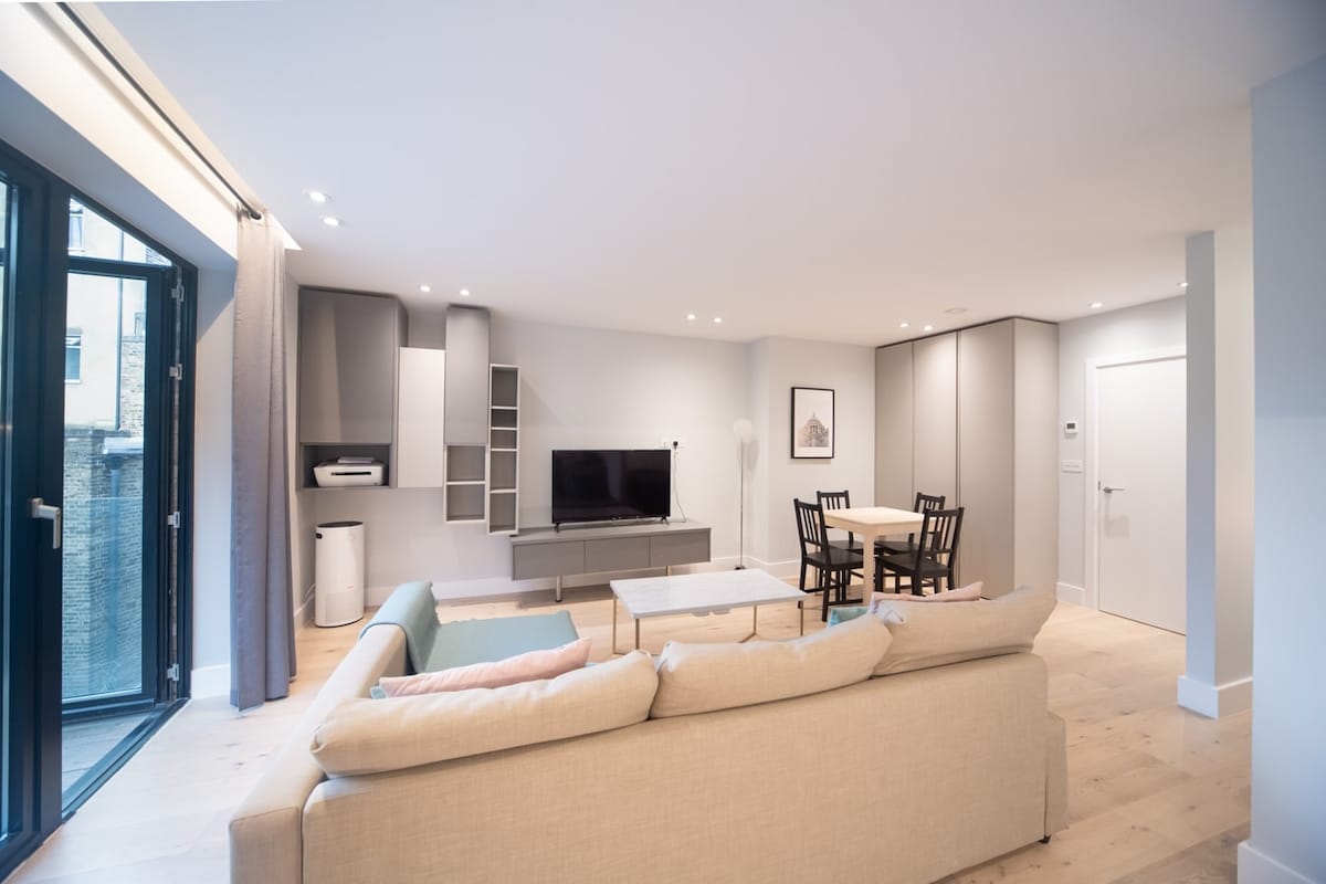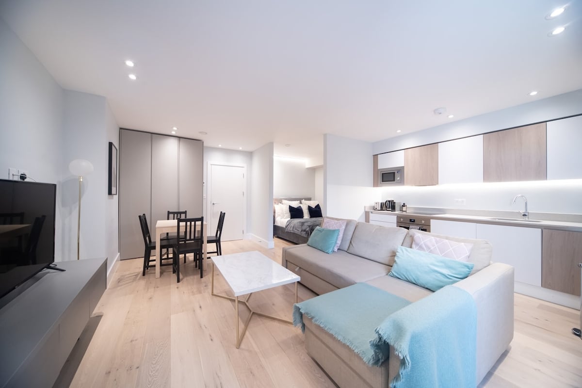 This spacious and modern studio is suitable for up to 4 guests. Its convenient location in Zone-1 provides easy access to nearby tube and train stations, ensuring a convenient stay.