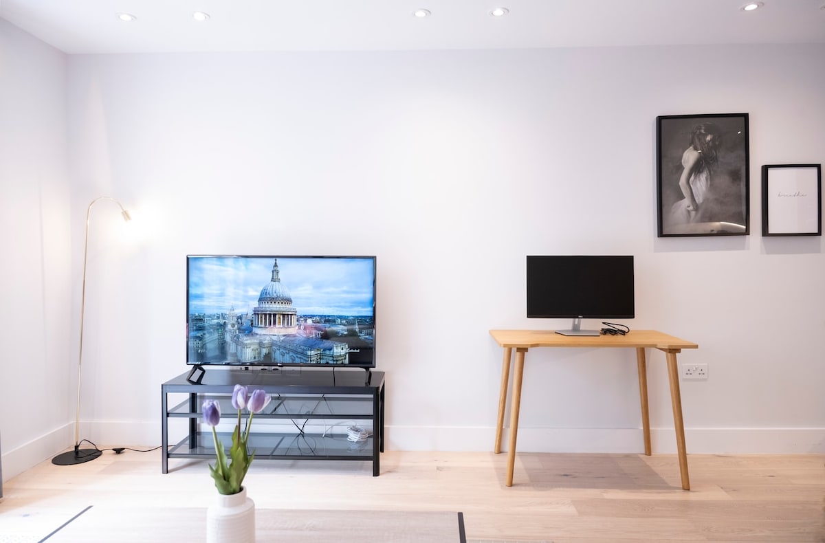 - Smart TV, desk and 27-inch monitor with HDMI cable.