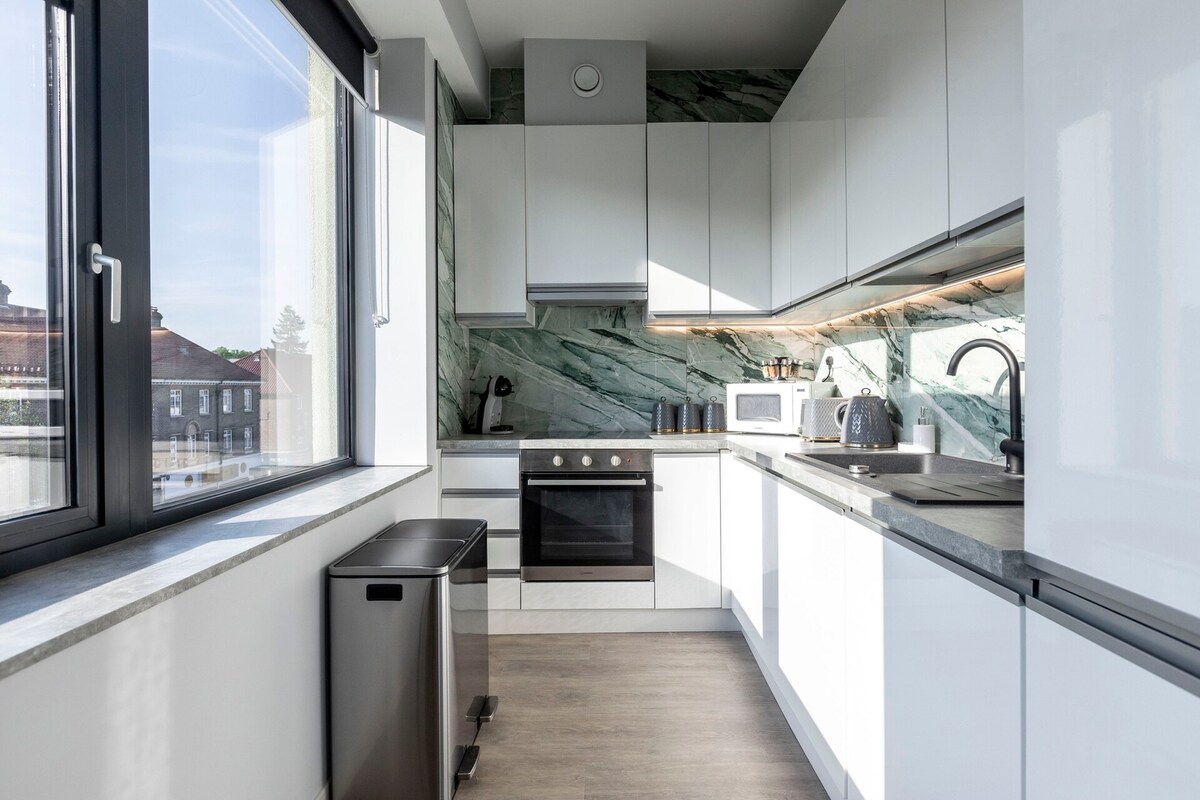 Enjoy modern furnishings, a fully equipped kitchen with a washing machine and dishwasher, a spacious bathroom with a shower, and comfy bed and a sofa bed. Take advantage of Free Parking, super-fast WiFi throughout, and a smart TV.