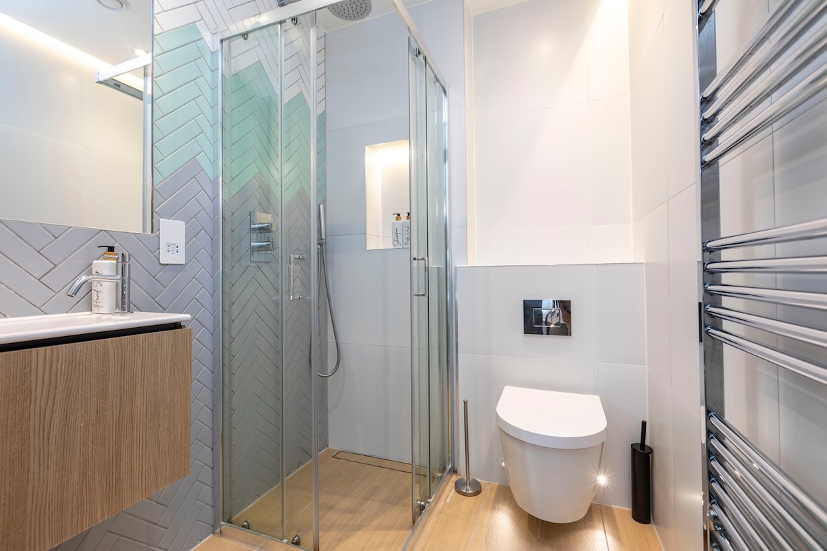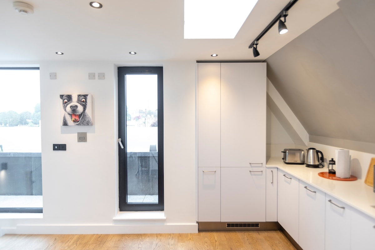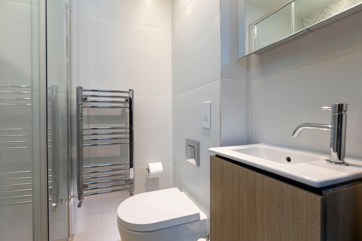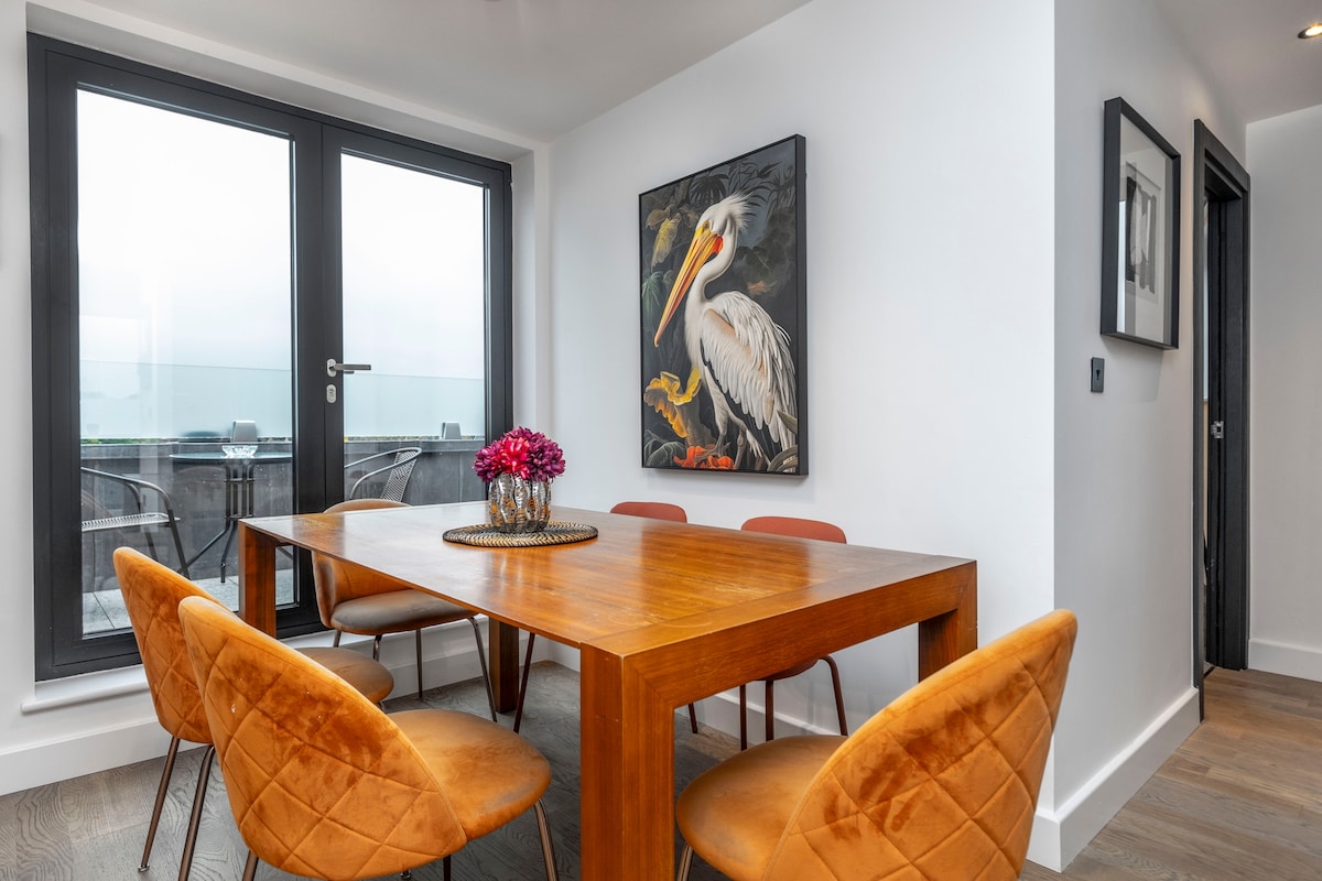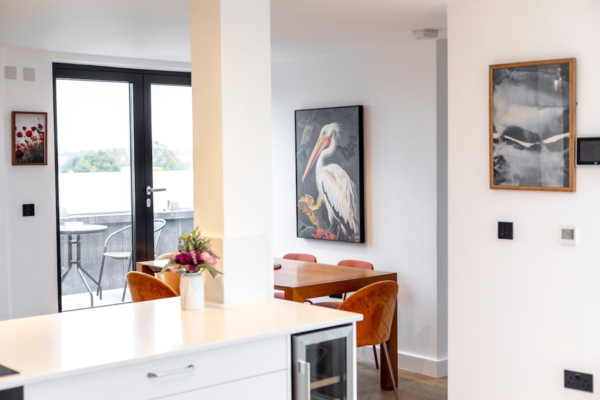 Welcome to our 3-bedroom, 3-bathroom flat, just a 5-minute walk to Kentish Town Tube station, located on the 3rd (Top) floor in a modern building, perfect for up to 6 guests! The main floor has a wide entrance, a bedroom with a king-size bed, and a full bathroom. Upstairs, a bright living area and fully equipped kitchen, with access to three balconies. There are two more king-size bedrooms, each with its ensuite bathroom. Fibre WiFi is available throughout the flat, and the building has a lift.