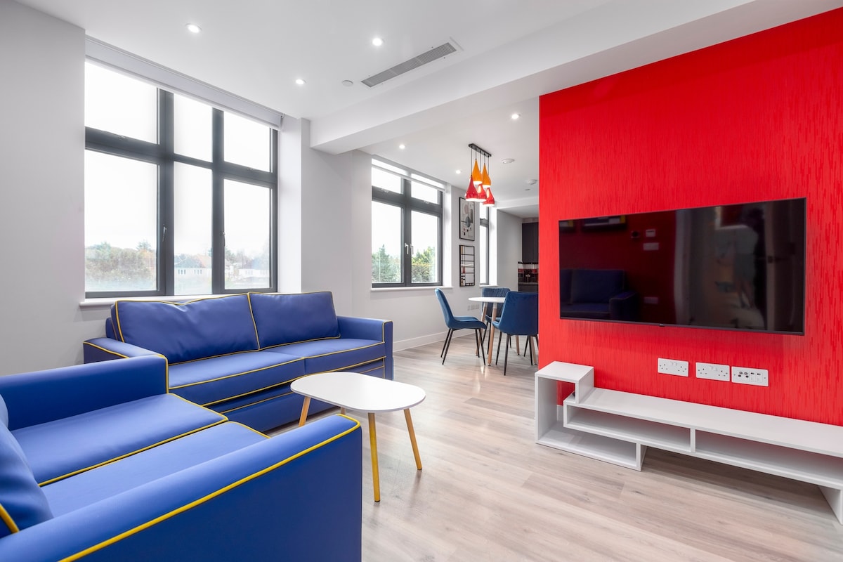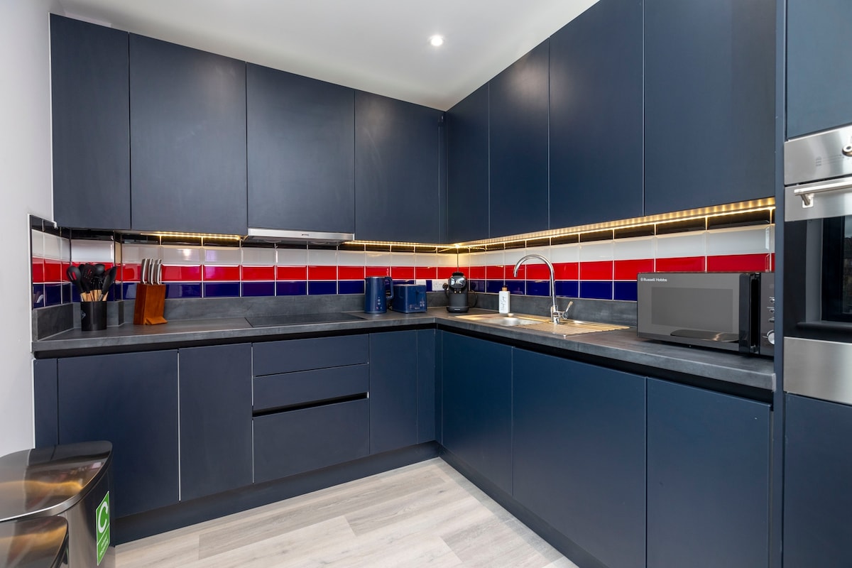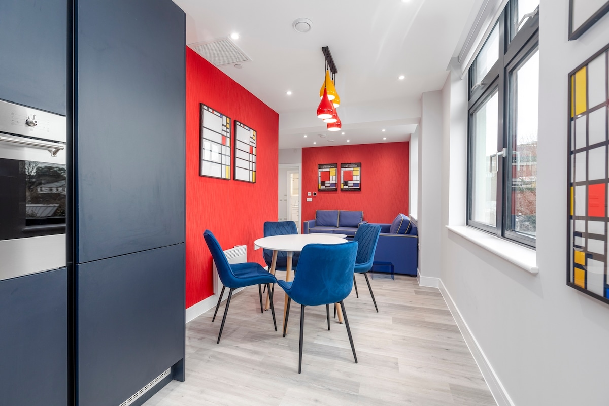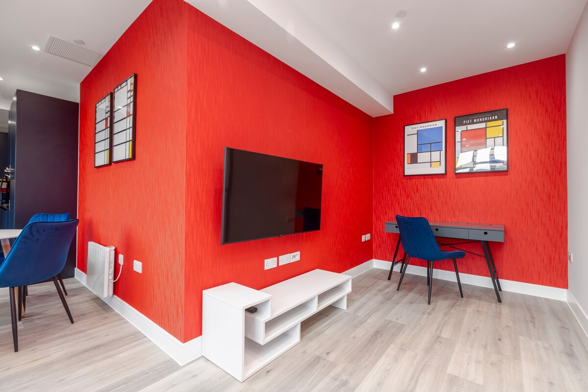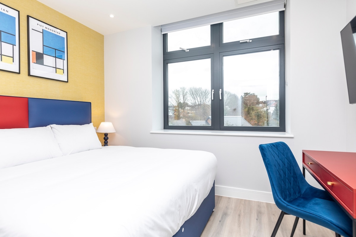 Unique 1-Bed, 1-Bath flat in Orpington, newly refurbished in the vibrant style of artist Mondrian! Bright, spacious, and full of colour, this high-standard flat features a fully equipped kitchen, an airy living area, and plenty of artistic charm. Located in a modern building with lifts and free parking, you’ll also enjoy air conditioning, fast WiFi, a Super-King bed (180 x 200 cm) and a Whirlpool bathtub.
