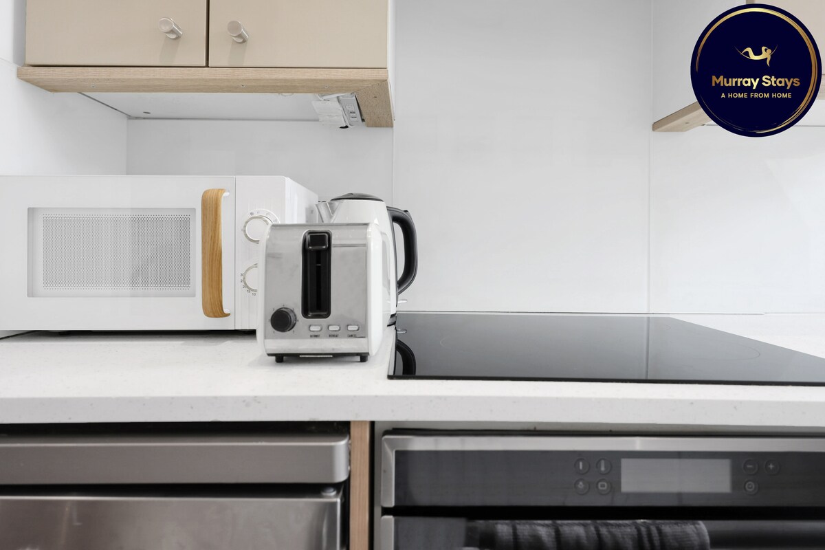 โ The apartment offers premium quality high thread count fresh white linen for you to sink into after a long day of working, or leisure.