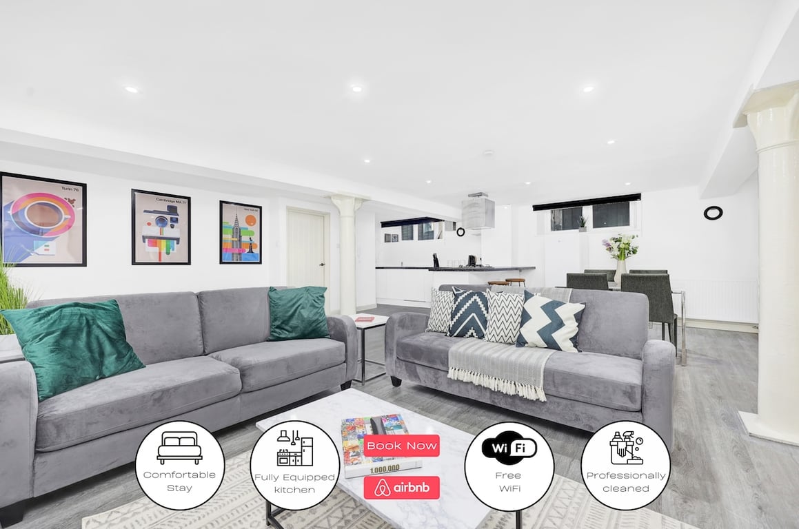 I love the location of this flat, it’s at the end of an alley way and has convenience shops and a Sainsbury’s nearby. It’s also got pubs/bars, restaurants, good shopping options and Liverpool St station all within walking distance. The flat itself is nice and spacious, clean and quiet, we couldn’t hear any street noise. The only thing to note is that it is a basement flat which may not suit everyone but it does not feel claustrophobic at all. I would very happily stay there again!