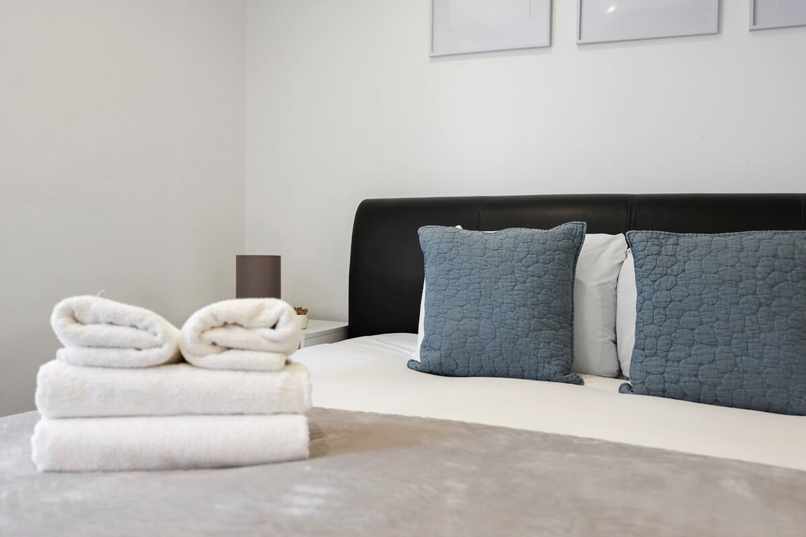 โ Spacious king-sized bedroom feature plenty of storage space for clothes and comfortable beds with crisp hotel linen.