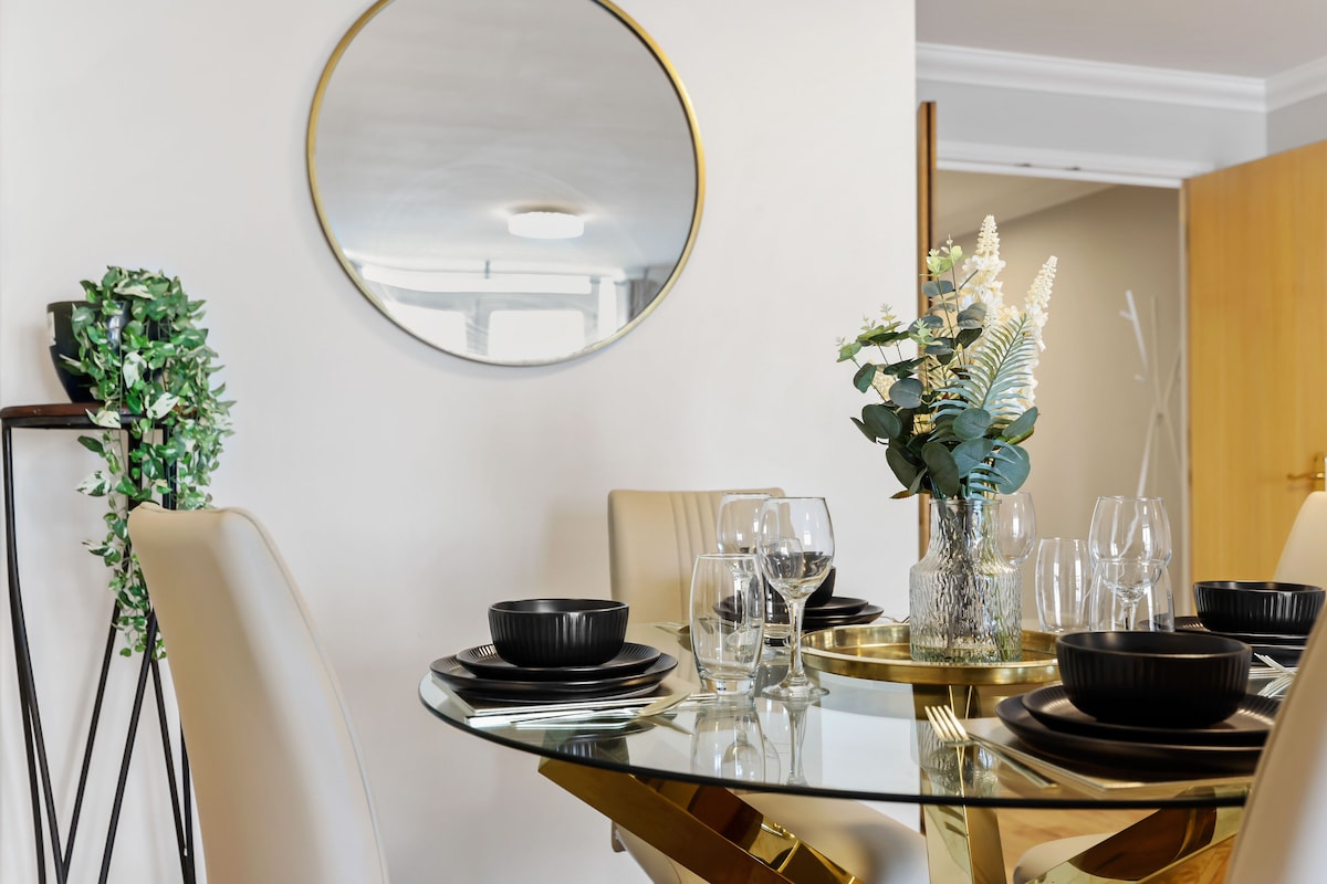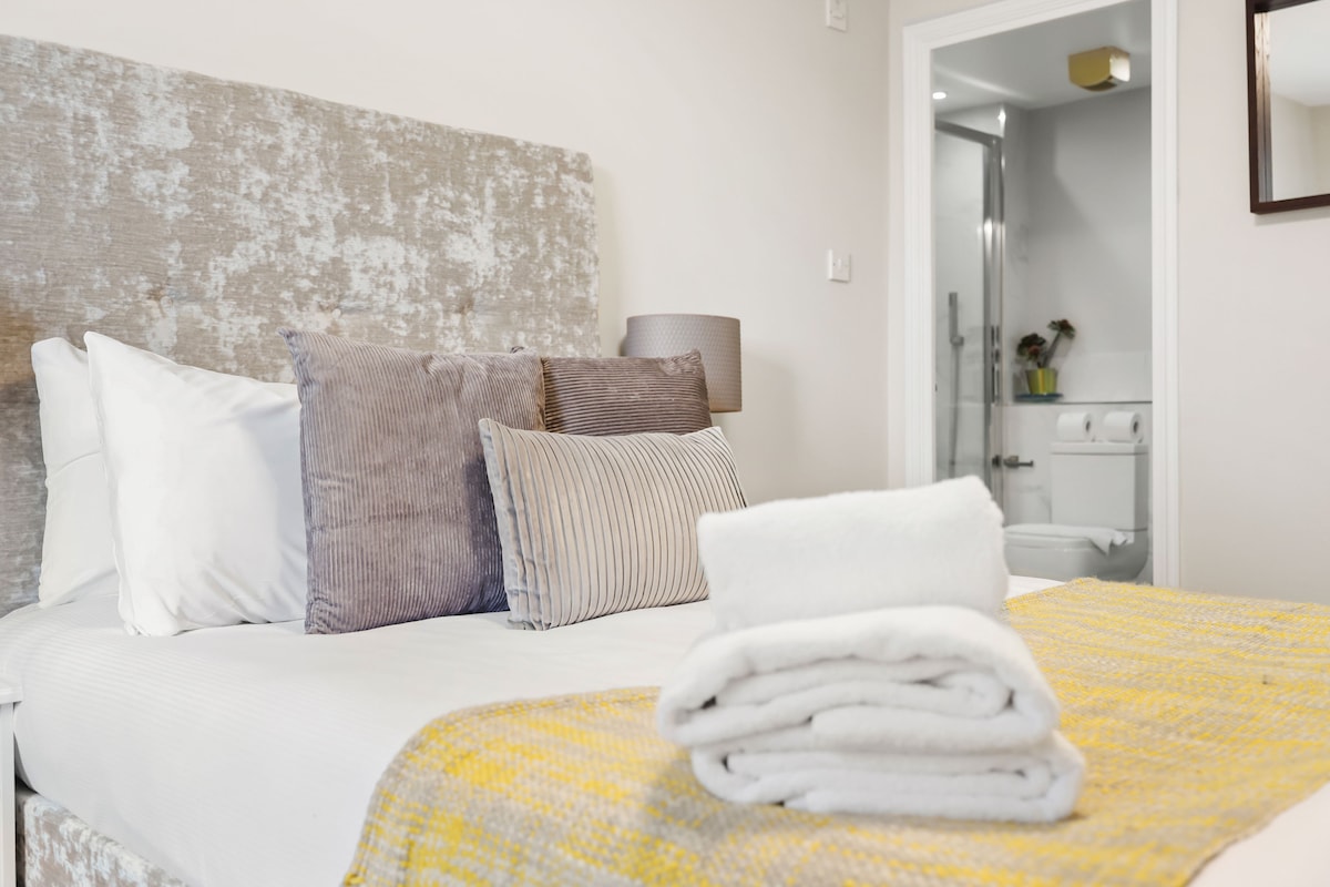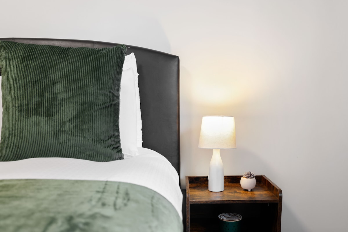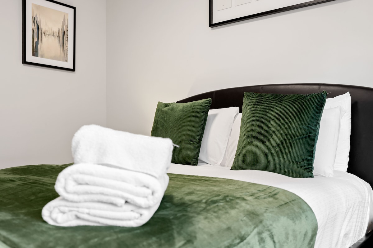 โ The apartment offers premium quality high thread count fresh white linen for you to sink into after a long day of working, or leisure.