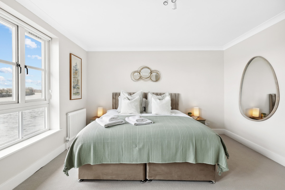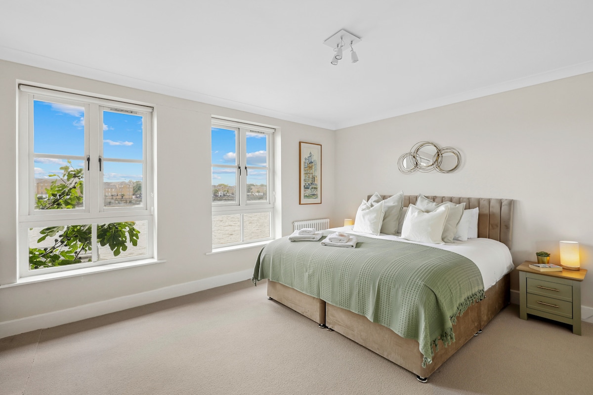 Firstly, the apartment was as mentioned in the description and as shown in the photos. The location is very nice, overlooking the River Thames. There's a convenience store about 100 steps away from the property, and you get pretty much everything essential there. The location is good for walks or just spending time near the river in the mornings/evenings. There's a car park right outside the front door as well, for people who'd like to rent a car. The apartment can improve on the following aspects: - Locks and fittings of the bathroom doors. They need repairs/replacement. Not a major problem, but still. - Hot water in the showers was not adequate in terms of the water flow and the time it took to reheat the water. This is important, especially in the cold weather. - If traveling with seniors or with people who cannot climb stairs, this may not be the most suited property. Apart from these points, everything was good.