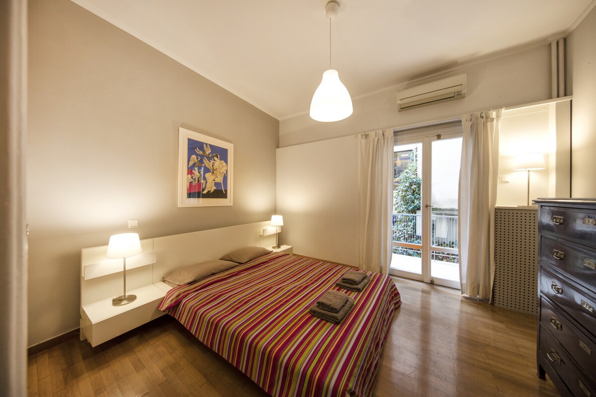 The apartment is located next to Pedion tou Areos, one of the largest park in Athens and only 6 minutes away from the National Archaeological Museum. In a vibrant area near Exarchia, with bohemian atmosphere full of beautiful cafes and rock-jazz bars.