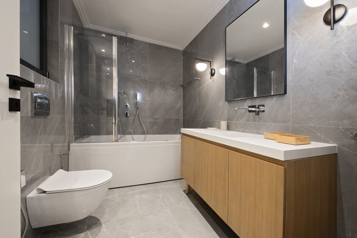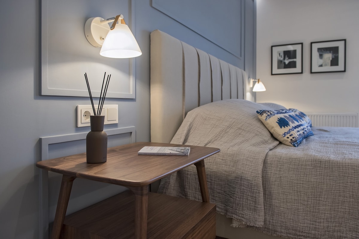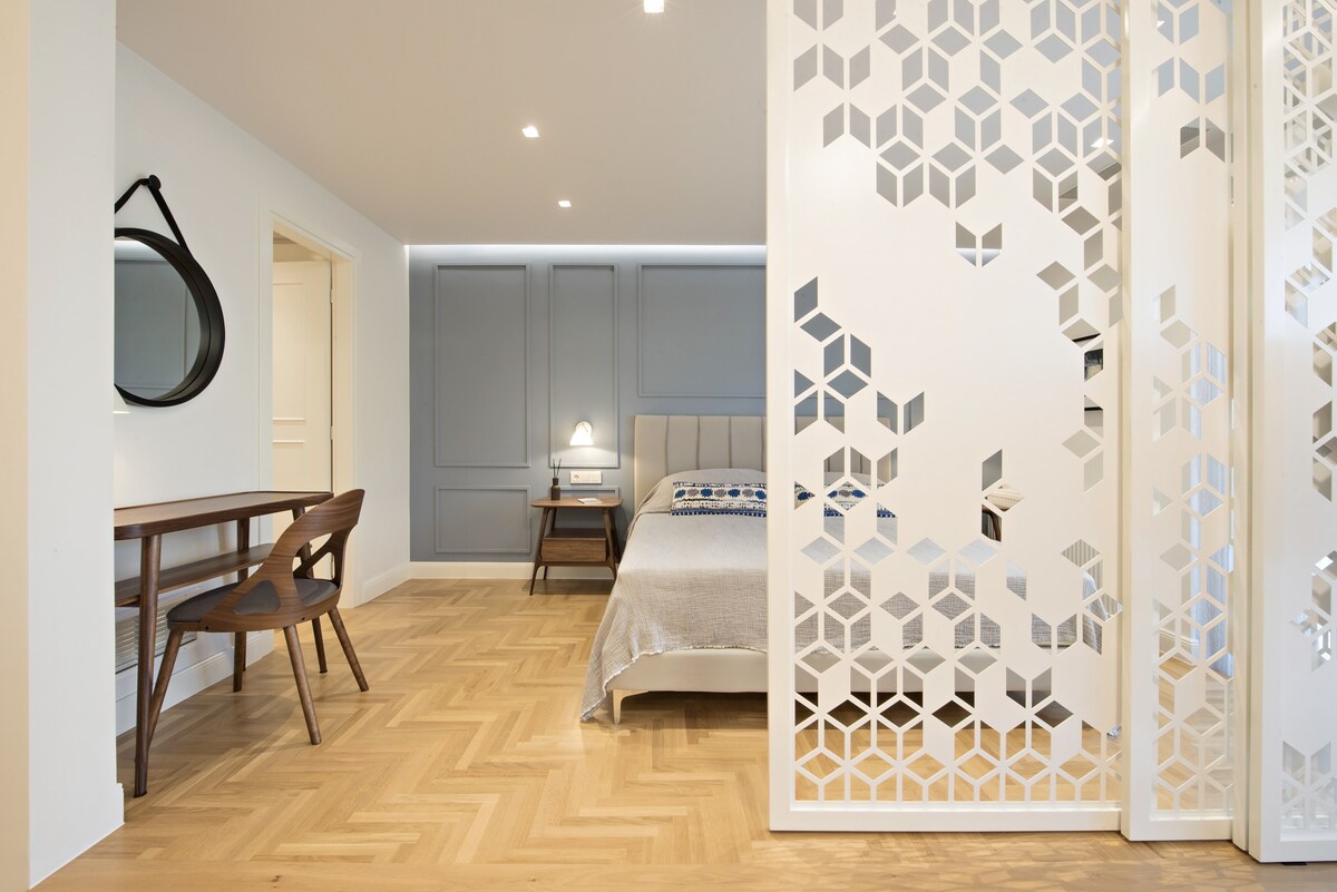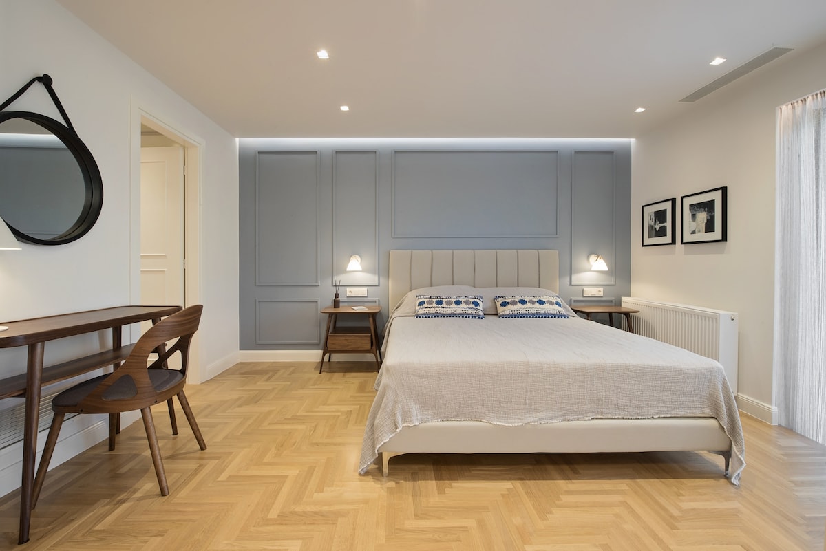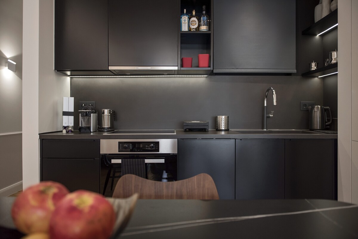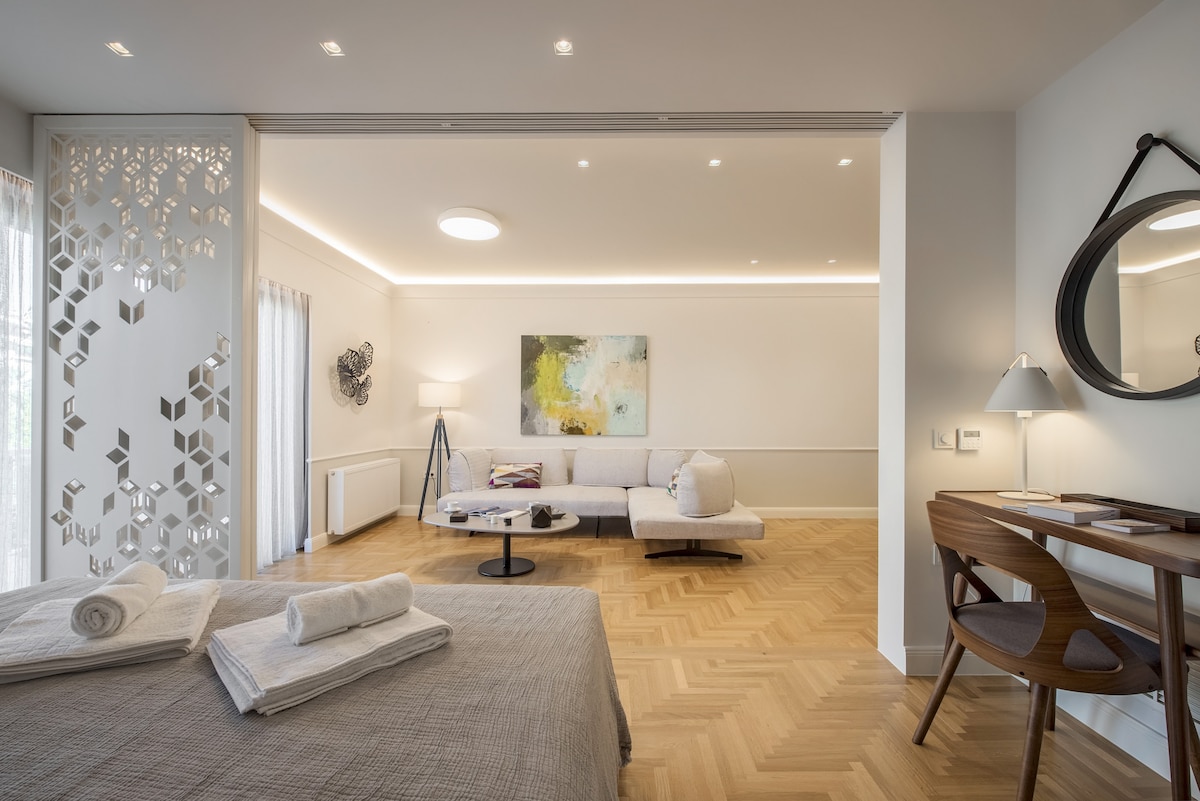 Stay in this gorgeous designer home in the very center of Athens, just a few steps from the metro and close to some of the city’s best restaurants, bars and shopping areas. The apartment is right opposite the Us embassy and Athens’ Concert Hall, very close to a number of Athenian hospitals, fertility and beauty clinics, and very conveniently located for the city’s university campus. This is a great base from which to explore the city in style and comfort. This spacious one bedroom apartment is set in one of Athens' most central spots, in a 1960s heritage building. It has just been completely renovated by a well-known team that turned it into an chic, minimal open plan space with designer features and a relaxed atmosphere. You will enjoy the open-plan living, dining and kitchen area, furnished with top-of-the-range, designer pieces. It exudes an air of elegance, luxury and calm overlooking Athens' busy central avenue. The bathroom has also been fully renovated to exceptionally high standards. Guests will have exclusive access to the entire apartment . We are not on the premises but we are just a phone call or a text away should you require help or advice. You will be staying right opposite one of the city's most popular squares, Mavilli Sq. with its well-known bars, restaurants and galleries. The Megaron Metro Station is just a few steps away as is the Athens Concert Hall, numerous hospitals ( Ippokrateion, Alexandra, Children's Hospital, Laiko, Euroclinic etc.), medical centres and Serum Clinic. Just a few minutes' walk away you will find some of Athens' best restaurants and a little bit further you will be shopping in Kolonaki, the city's most upmarket neighbourhood. Syntagma, the Acropolis, sights and major museums are all just a short metro or taxi ride away. Catch a taxi right outside the front door at any point of the day or walk a minute to reach the metro station. You will also be able to use the city's buses. Please be advised that parking is tightly contolled in the area throughout the day. However there are a number of garages you could use to park your car for a fee.Please note that if you arrive between 21:00 and 23:00, a €15 late check-in fee will apply, payable to our colleague who will welcome you.