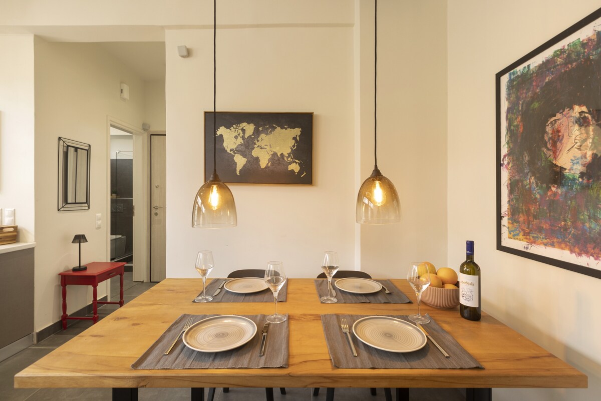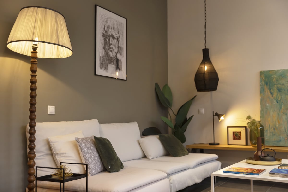 Art is everywhere in this stunning 2br/1ba Apt in Koukaki, opposite the National Museum of Contemporary Art. Every single element of furniture and decor shouts out elegance. Beautiful lighting, comfortable furniture, modern pieces combined with eclectic vintage ones, everything promises to make your stay unforgettable.