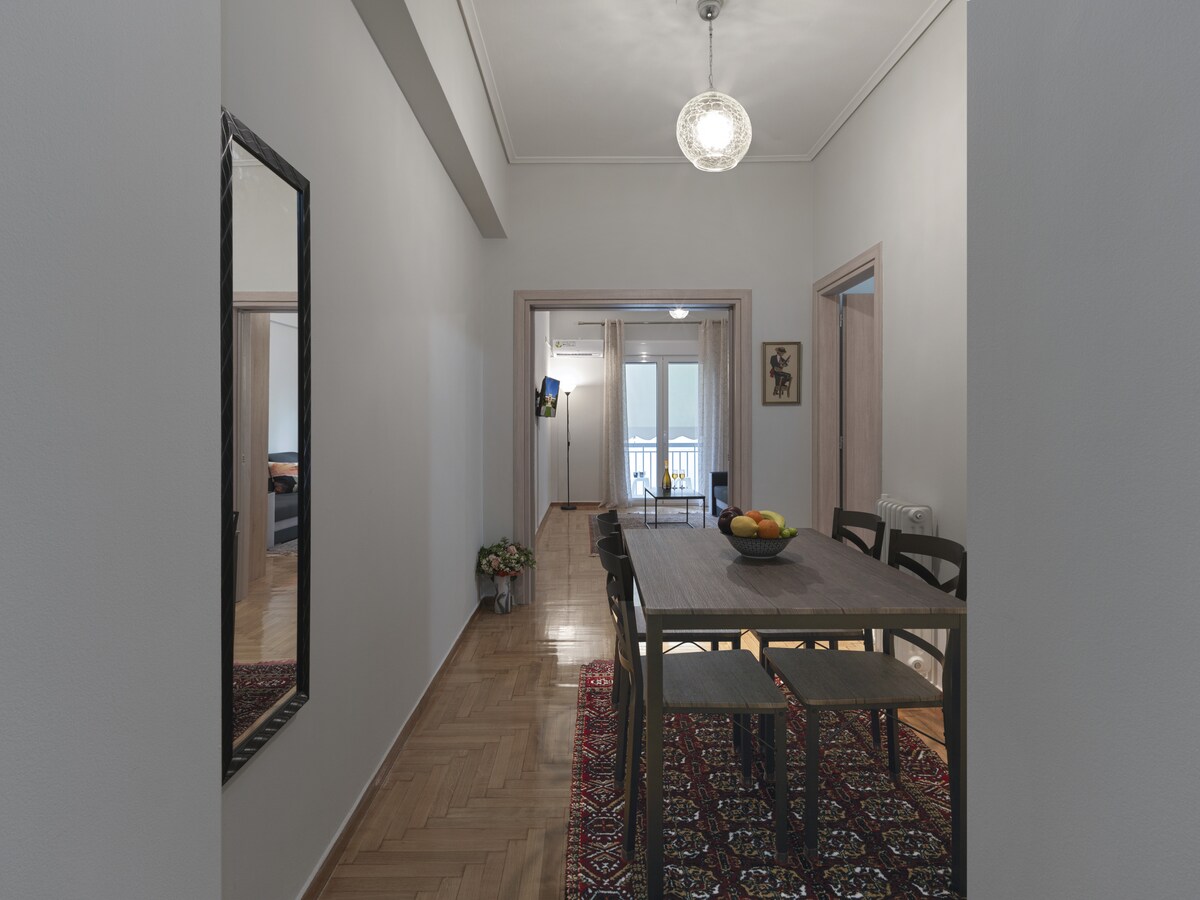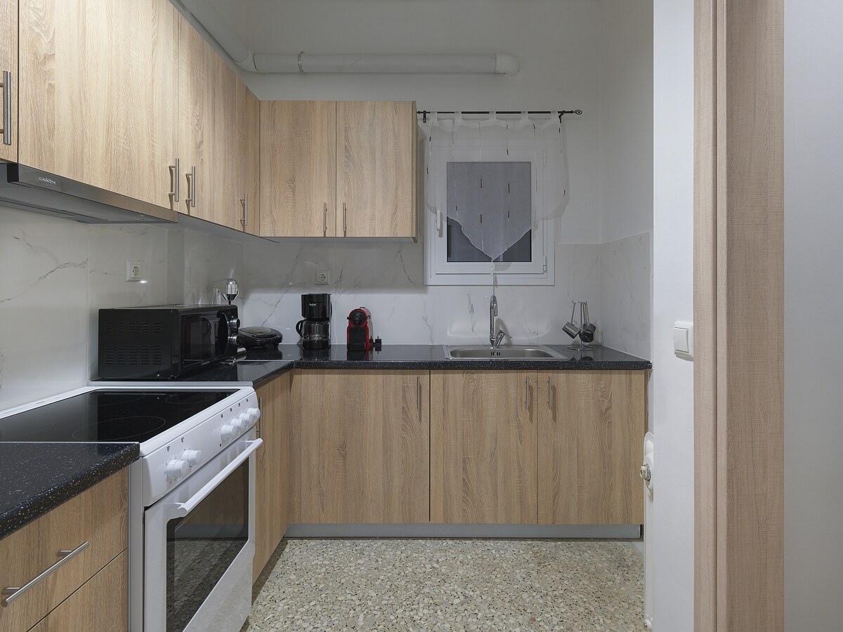 This comfortable, 1 Bdr apartment in a busy area with a big advantage: one of the largest public parks is a step away and so is the National Archaeological Museum the Metro and basically the whole city. It is fully equipped for a comfortable stay.
