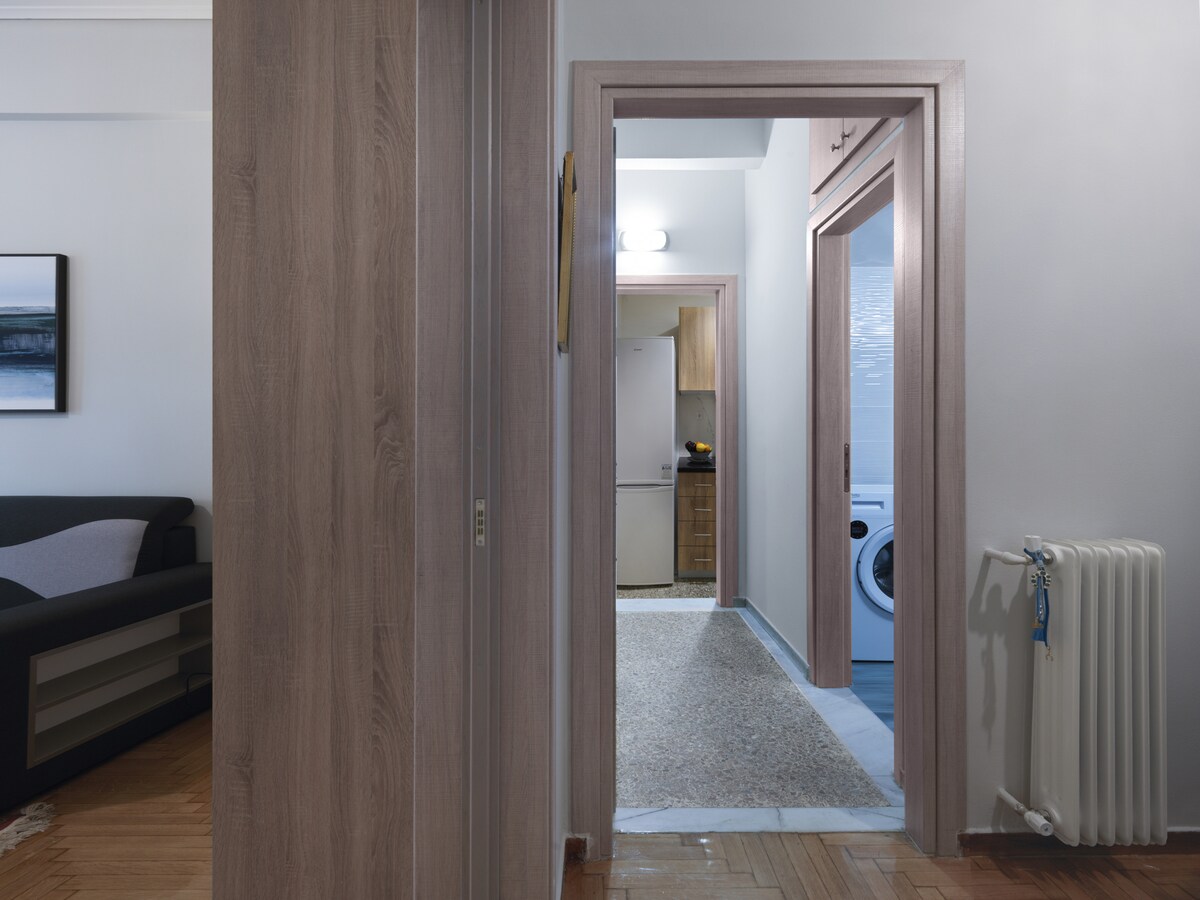 This comfortable, 1 Br apartment in a busy area with a big advantage: one of the largest public parks is a step away and so is the National Archaeological Museum the Metro and basically the whole city. It is fully equipped for a comfortable stay. One of the largest public parks of the city is literally at your doorstep and the National Archaeological Museum filled with wonders of the ancient World is a short walking distance away. If you don’t feel like walking to the Centre of Athens, grab the metro which is a minute away. A place you will definitely enjoy living in with your family or friends at a truly strategic location! You will be next to Patision Avenue and the fantastic public park “Pedion you Areos”. The National Archaeological Museum is around the corner, where you will not only see amazing historical wonders but also a beautiful botanical garden in its inner courtyard. Enjoy your coffee at the surrounding areas or grab the metro which is a minute away from your door and get downtown to the Historical Centre of Athens.Please note that if you arrive between 21:00 and 23:00, a €15 late check-in fee will apply, payable to our colleague who will welcome you.For arrivals between 23:00 and 09:00, the only option is to use our taxi service.