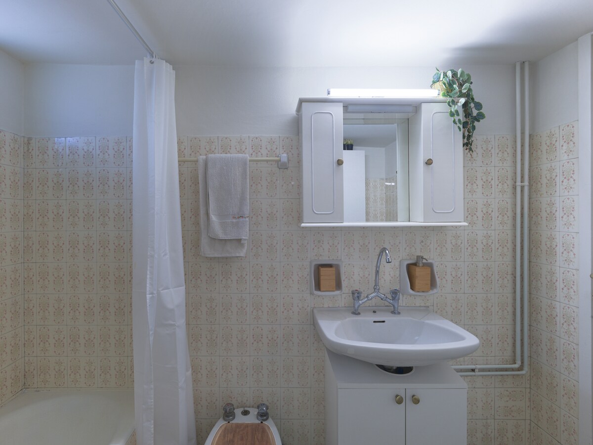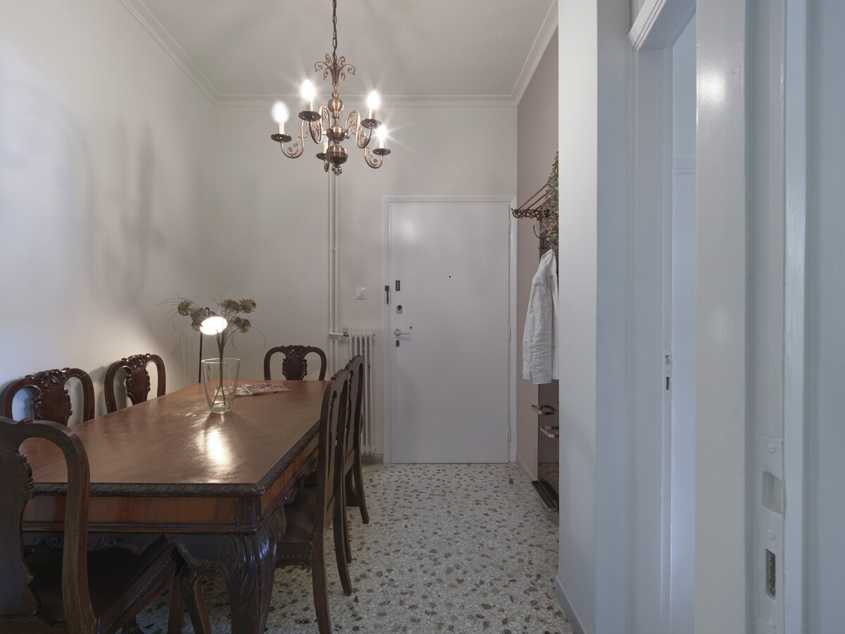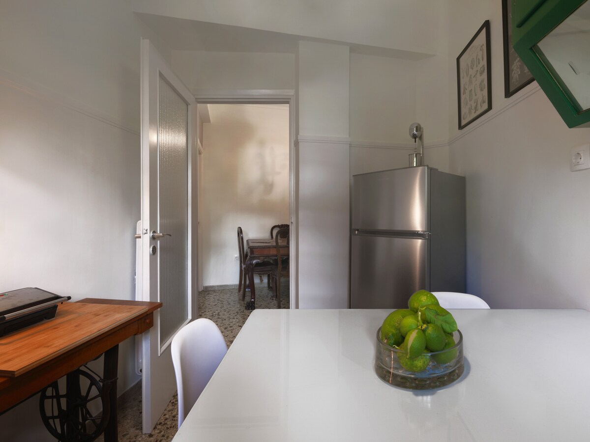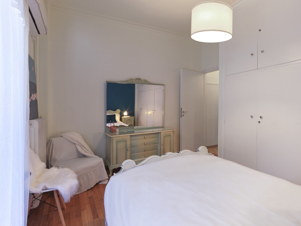 Timeless charm. This one bedroom space is a testament to our deep appreciation for vintage aesthetics, seamlessly blending the elegance of the 60s and 70s with modern comforts. Mosaic floors lay the foundation for this unique space. The living room is a perfect fusion of old and new, with carefully selected vintage furniture pieces that resonate with the past. It's a space where nostalgia meets contemporary style, creating an ambiance that's both inviting and intriguing. In the kitchen, you'll find a mix of vintage charm and modern functionality. It's equipped with all the conveniences you need, allowing you to prepare your favorite meals. The bedroom is generously spacious, providing a restful escape where you can unwind in the comfort of a bygone era. The combination of old and modern pieces in this room creates a unique, serene atmosphere. A retro, spacious bathroom compliments the set up, also adding a touch of old-world lux to the picture. This one-bedroom apartment in Vyronas is a beautiful blend of vintage allure and contemporary comfort. It's a space where the past gracefully mingles with the present, promising you an interesting stay. Come and experience the best of both worlds in this delightful place. If you arrive between 21:00 and 23:00, a €15 late check-in fee will apply, payable to our colleague who will welcome you.For arrivals between 23:00 and 09:00, the only option is to use our taxi service.