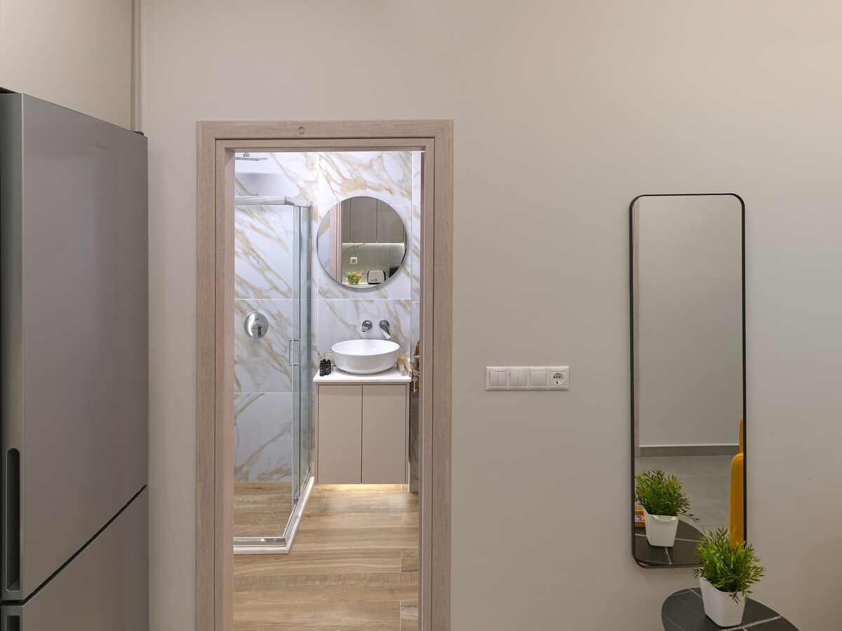 A small urban nest in the heart of Athens's lively Pagrati neighborhood! A studio designed for comfort and style, perfect for two guests. Fully equipped modern kitchen for convenience. Stylish, featuring a sleek shower for your relaxation and refreshment.
