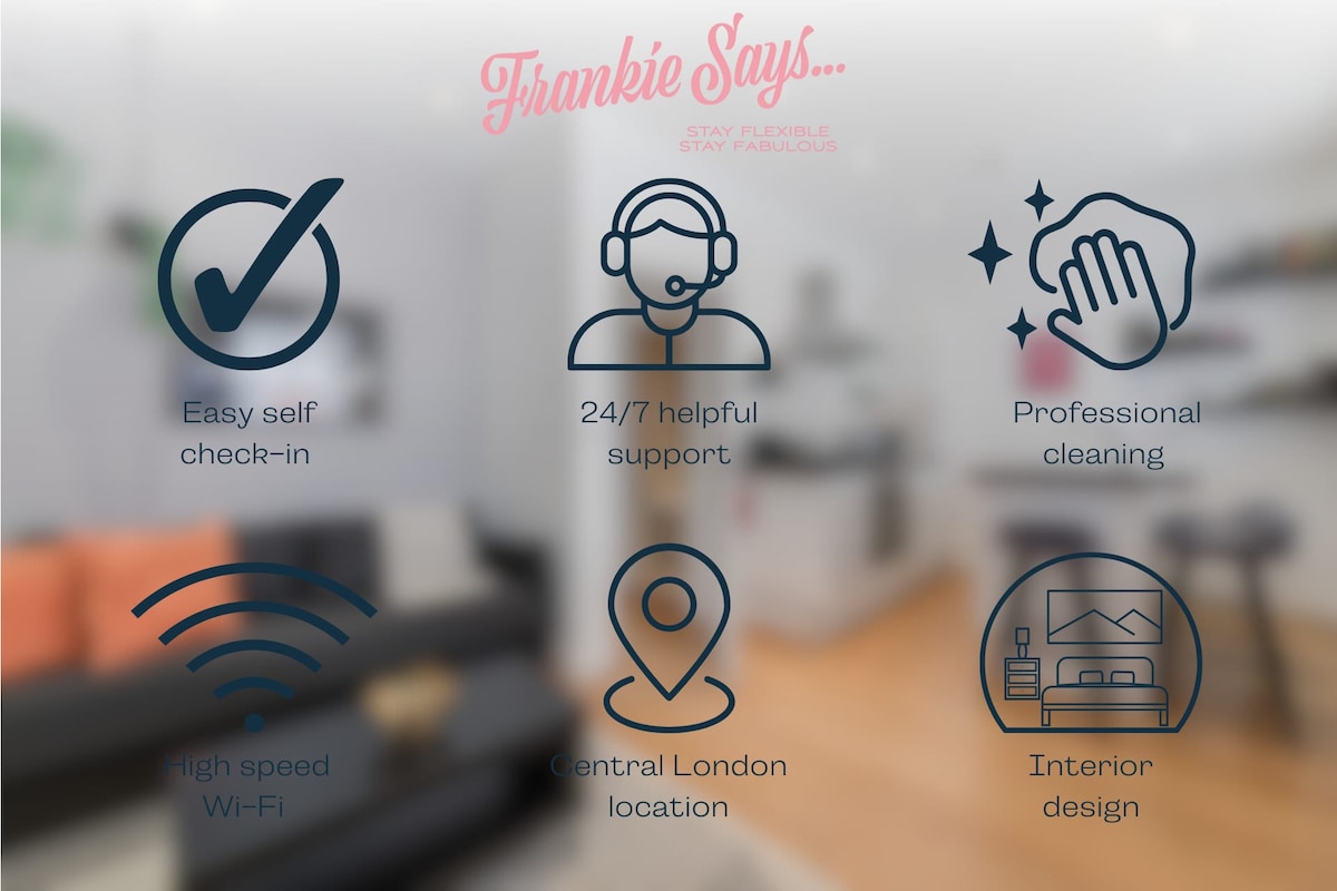 Step into this stylish Fitzrovia apartment, offering 31.7 SQ M / 341 SQ FT of smart, comfortable living space in the heart of Central London.✔ Bright Open-Plan Living Area - sofa bed, Smart TV and relaxing lounge space