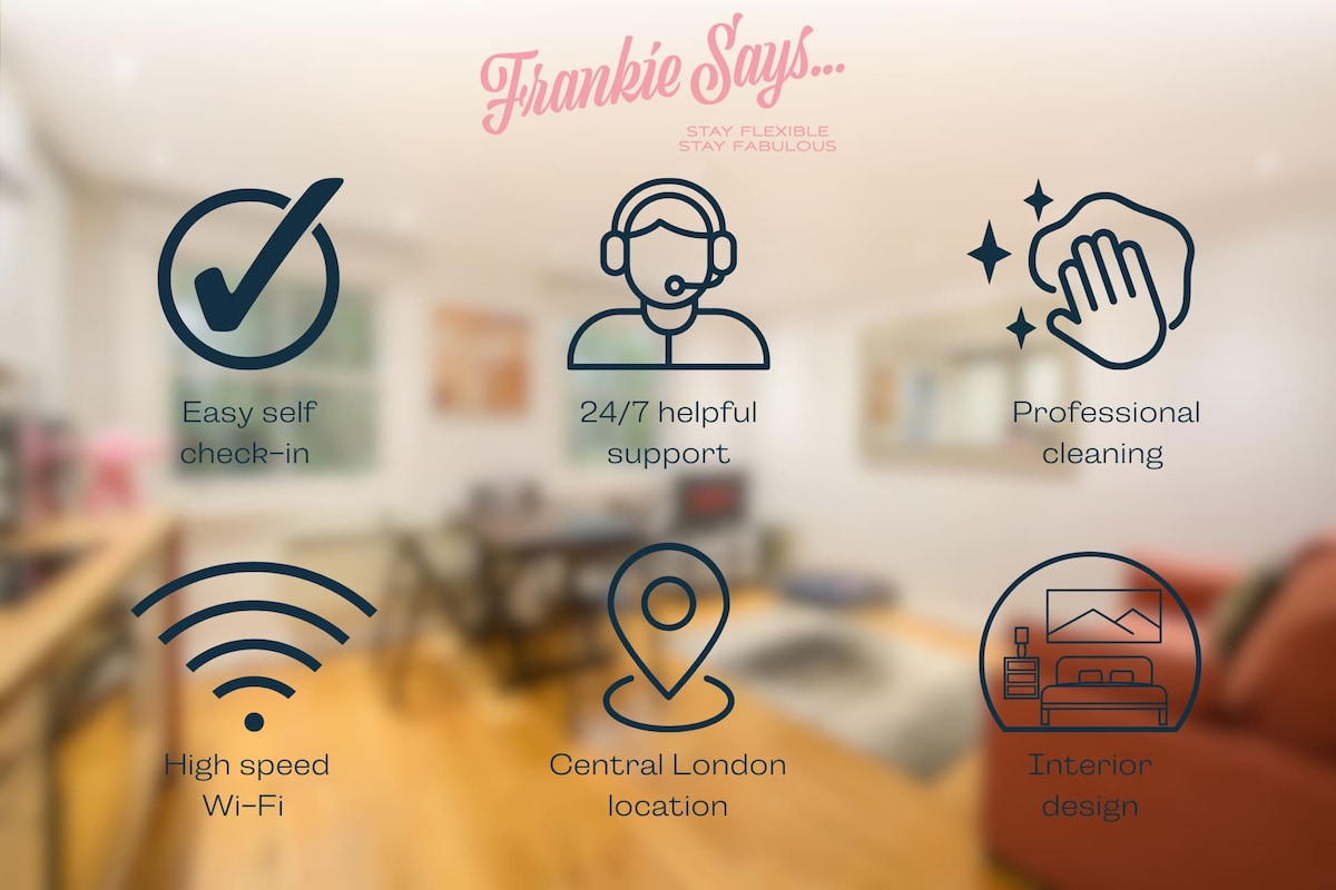Welcome to Frankie Says’ Holborn Haven! This brand spanking new, super luxurious apartment is your perfect London retreat. Located in the vibrant Holborn area, you are just a four-minute walk from The British Museum and surrounded by a plethora of London’s best sightseeing spots. With every creature comfort at your disposal, you’ll feel right at home while enjoying the excitement of the city.Step into a world of charm and character, where each detail has been thoughtfully curated for your enjoyment. This apartment is a flamingo in a flock of pigeons, offering a unique escape from the ordinary.