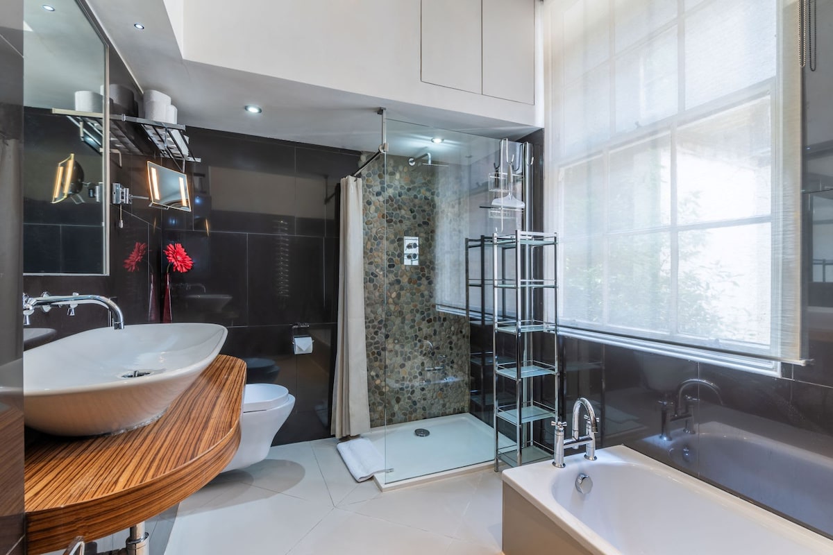 • Sleek bathroom: A modern walk-in shower with quality finishes and complimentary toiletries.