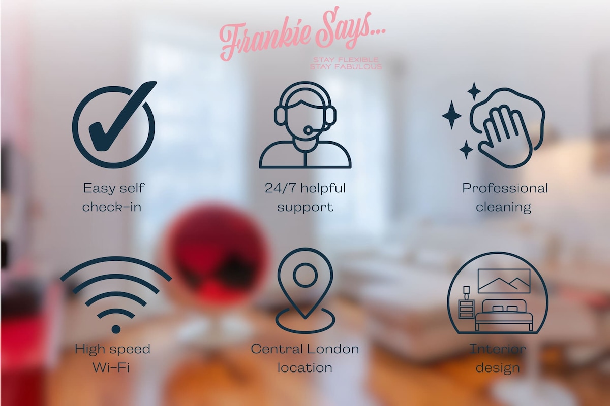 We had a great stay. The apartment is well designed, comfortable and pleasant. It is large and the decor is well done. As in all urban areas there is occasional street noise, but the bedroom is in the back and very quiet. Frankie and crew were very responsive, great communication. There are a bunch of good restaurants and cafes steps away. Centrally located with tubes stations in close proximity. We would definitely stay here again.